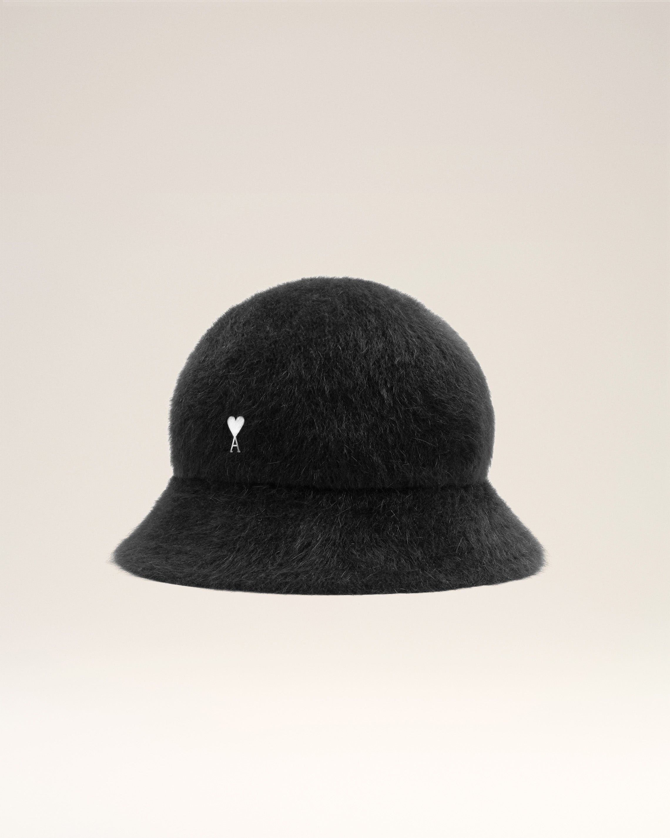 Bucket hat in blended angora. Ami de Coeur metallic stud Made in Italy (with love) REF : UHA236.AW0028.001 SIZE & FIT Fits true to size. Take your normal size. COMPOSITION & CARE GUIDE 70% Wool, 30% Acrylic Do not wash Chlorine prohibited Do not tumble dry Do not iron Dry clean possible