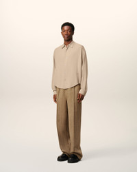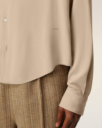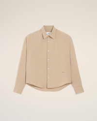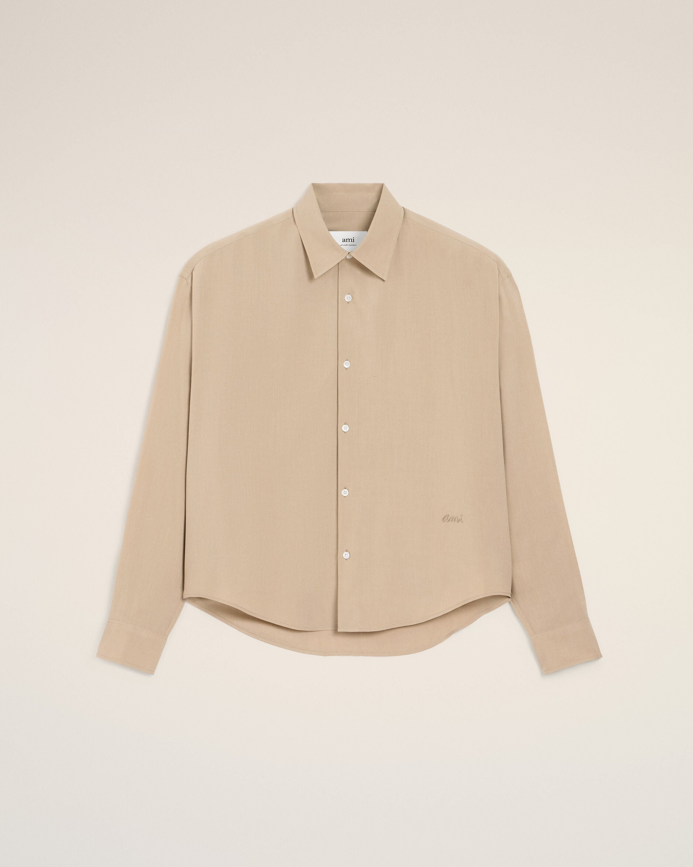 Plain viscose shirt. Unisex product Boxy fit Classic collar Buttoned placket on the front and cuffs Mother of pearl buttons Tonal italic "ami" embroidery on bottom left waist Center back length : 72,5cm (size XS) Center back length : 74,5cm (size M) Made in Portugal (with love) REF: USH767.VI0036.229 SIZE & FIT This style is unisex. For man, take your normal size. For woman, take one size down than your usual size. Man model is 185 cm / 6"1 and is wearing a size M. Woman model is 177 cm / 5"9 and is wearing a size S. COMPOSITION & CARE GUIDE Main Material : 100% Viscose Chlorine prohibited Do not tumble dry Cool iron Dry clean gentle Do not wash