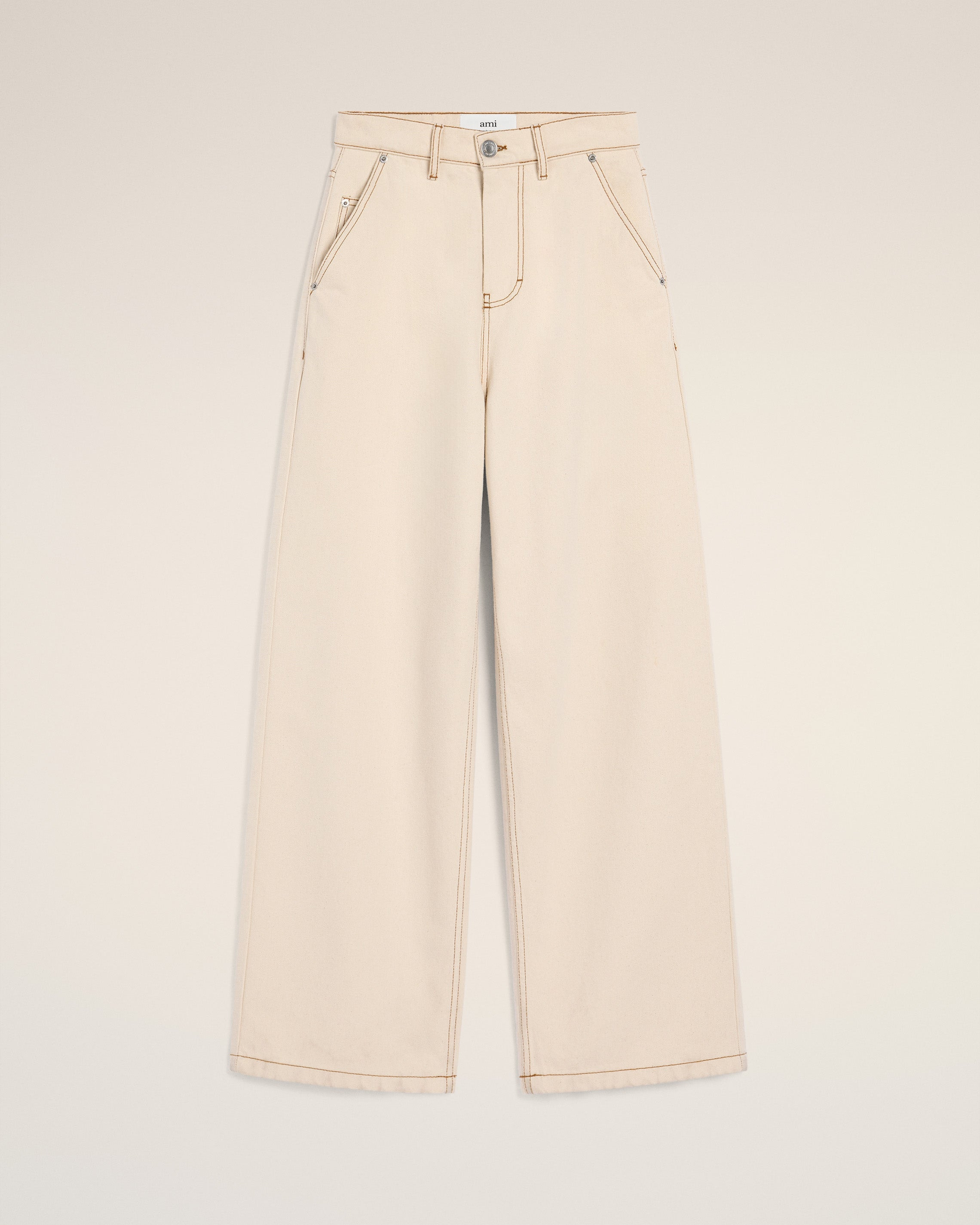 Wide fit jeans in colored cotton twill. Very large fit 30 cm bottom leg width (size 26) Classic waist Very large leg 5 pockets Zipped fly Denim metal rivets and buttons in nickel color "ami alexandre mattiussi" patch on the back Tobacco topstitches Made in Portugal (with love) REF: FTR456.DE0039.136 SIZE & FIT This item is designed to be worn lose. Take your normal size. Model is 1m78 / 5'10" and is wearing a size 26. COMPOSITION & CARE GUIDE 100% Cotton Machine wash at 30°C Chlorine prohibited Do not tumble dry Medium iron Dry clean possible Wash with similar colours