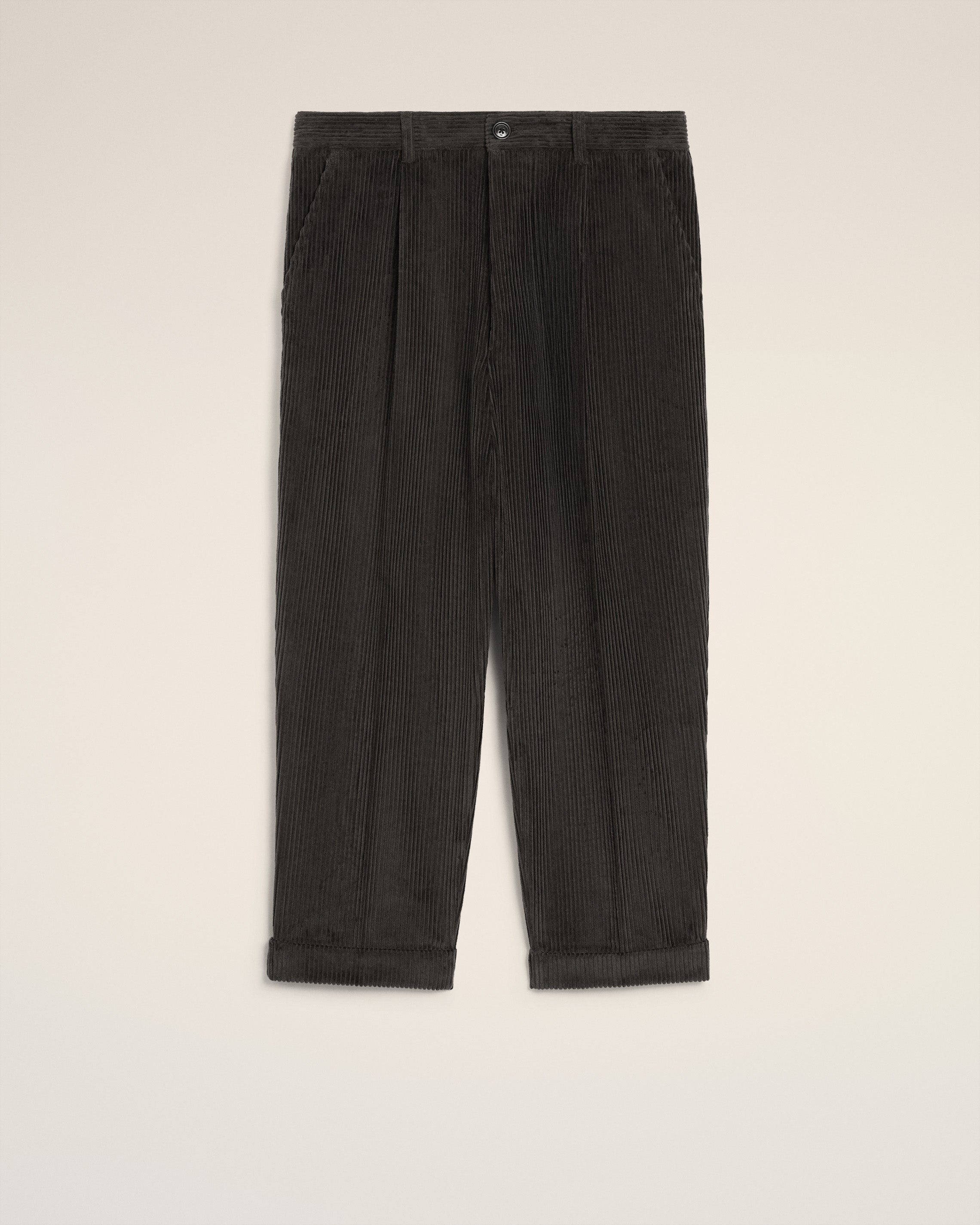 Carrot oversized fit trousers in corduroy velvet. Oversized carrot fit Corduroy trousers Buttoned fly Horn buttons Cuffed hems "ami alexandre mattiussi" patch on the back Front pleats 21 cm bottom leg width (size M) Made in Portugal (with love) REF: HTR121.CO0131.020 SIZE & FIT Fits true to size. Take your normal size. Model is 185 cm / 6"1 and is wearing a size M. COMPOSITION & CARE GUIDE Pocket Lining : 65% Polyester 35% Cotton Main Material : 100% Cotton Machine wash at 30°c gentle Chlorine prohibited Do not tumble dry Cool iron Dry clean possible Contains non-textile parts of animal origin