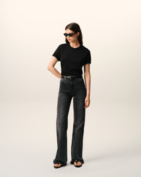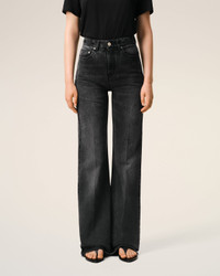 Flare fit jeans in used black denim. Flare fit High waist Flare leg 5 pockets Zipped fly Denim metal rivets and buttons in nickel color "ami alexandre mattiussi" paper jacron on the back Black topstitches Made in Portugal (with love) REF: FTR420.DE0124.031 SIZE & FIT This item is designed for a close fit. Take the next size up for a semi-fitted cut. Woman model is 181 cm / 5"9 and is wearing a size 26. COMPOSITION & CARE GUIDE Main Material : 100% Cotton Pocket Lining : 65% Polyester, 35% Cotton Machine Wash At 30°C Chlorine Prohibited Do Not Tumble Dry Medium Iron Dry Clean Possible Wash With Similar Colours Wash And Iron Inside Out
