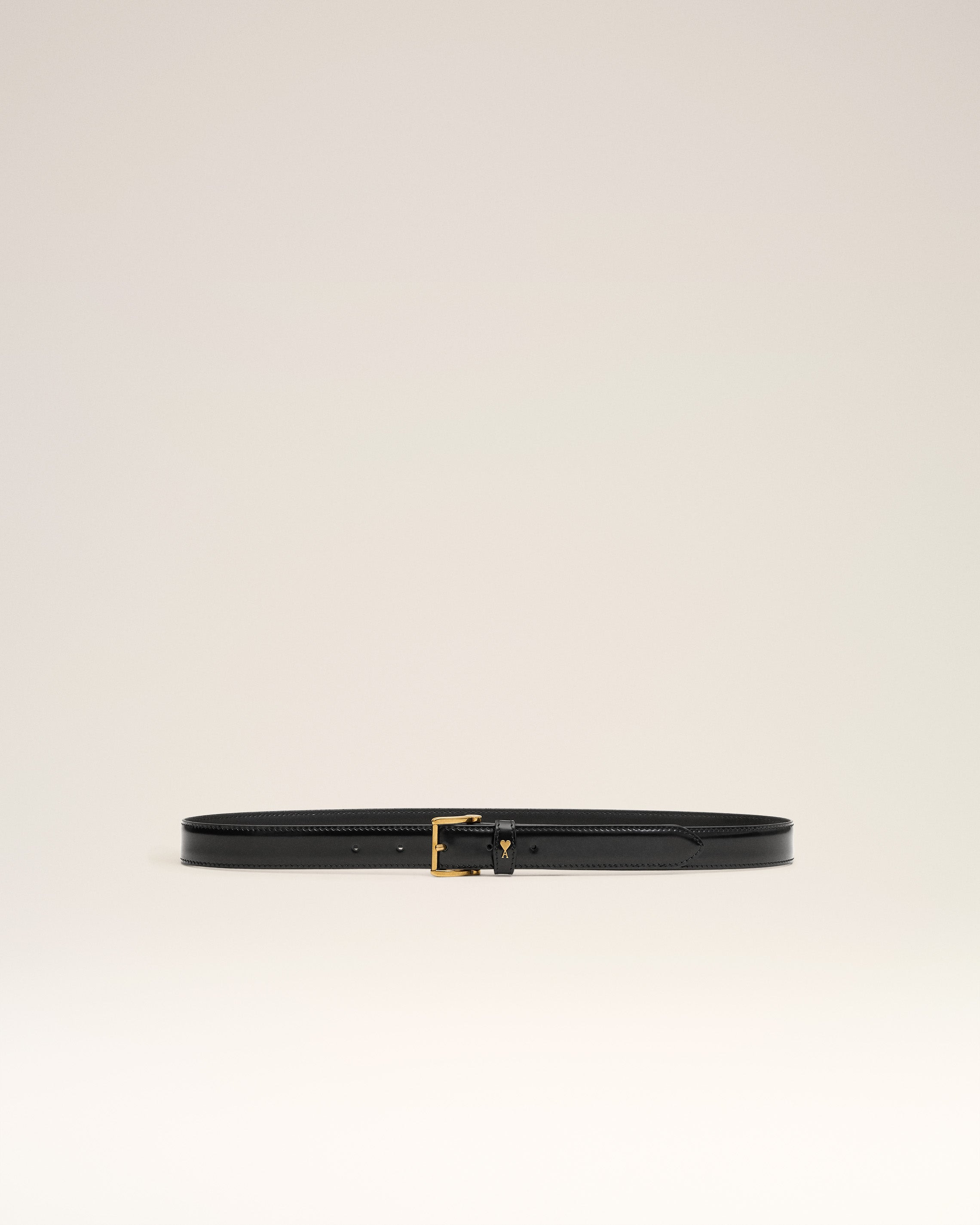 Paris Paris belt in glazed leather. Unisex product Metal buckle and Ami de Coeur stud in vibrated brass color Width: 25 mm Sizes: 75 / 85 / 95 / 105 Made in Spain (with love) REF: UBL029.AL0139.0015 SIZE & FIT Fits true to size. Take your normal size. COMPOSITION & CARE GUIDE Main Material : 100% Calfskin Main Lining : 100% Calfskin Do not wash