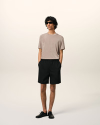 Elasticated waist shorts in technical twill in nylon and cotton. Classic fit 33 cm leg opening (size M) Water-repellent fabric Elasticated belt with button Internal waist drawstring Buttoned fly Patch pocket on the back "ami alexandre mattiussi" metal lettering signature on the chest Made in Romania (with love) REF: HSO304.PA0007.001 SIZE & FIT Fits true to size. Take your normal size. Model is 1m88 / 6'2" and is wearing a size M. COMPOSITION & CARE GUIDE 70% Polyamide, 30% Cotton Do not wash Chlorine prohibited Do not tumble dry Cool iron Dry clean petroleum solvent only on a gentle process