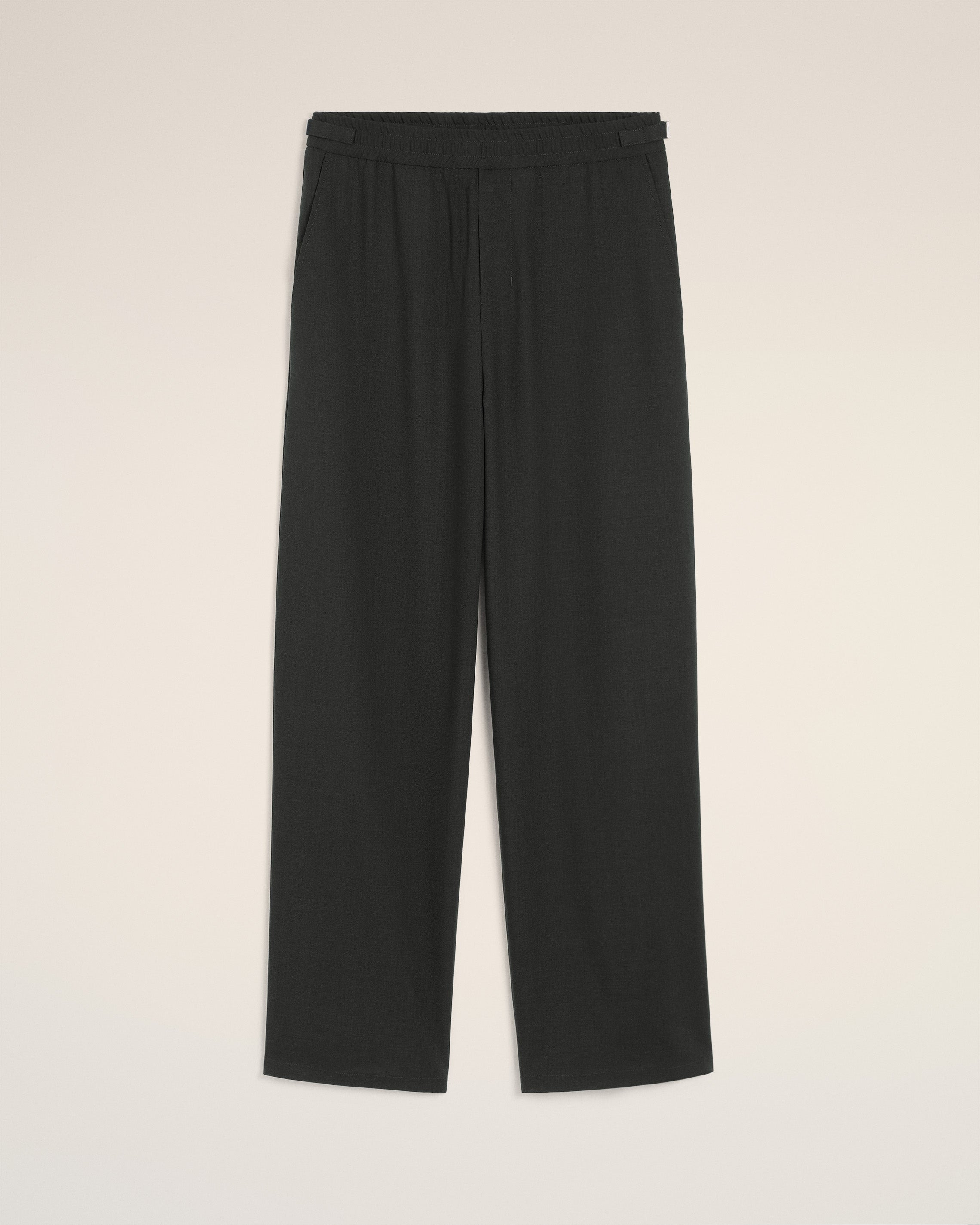 Elasticated trousers in light wool twill. Elasticated waist Zipped fly Patch pockets on the back Ami de Coeur rivet on the back pocket Straps with buckle in nickel color 28 cm bottom leg width (size M) Made in Portugal (with love) REF: HTR827.WV0066.020 SIZE & FIT Fits true to size. Take your normal size. Model is 185 cm / 6"1 and is wearing a size M. COMPOSITION & CARE GUIDE Main Material : 100% New Wool Do not wash Chlorine prohibited Do not tumble dry Medium iron Dry clean possible