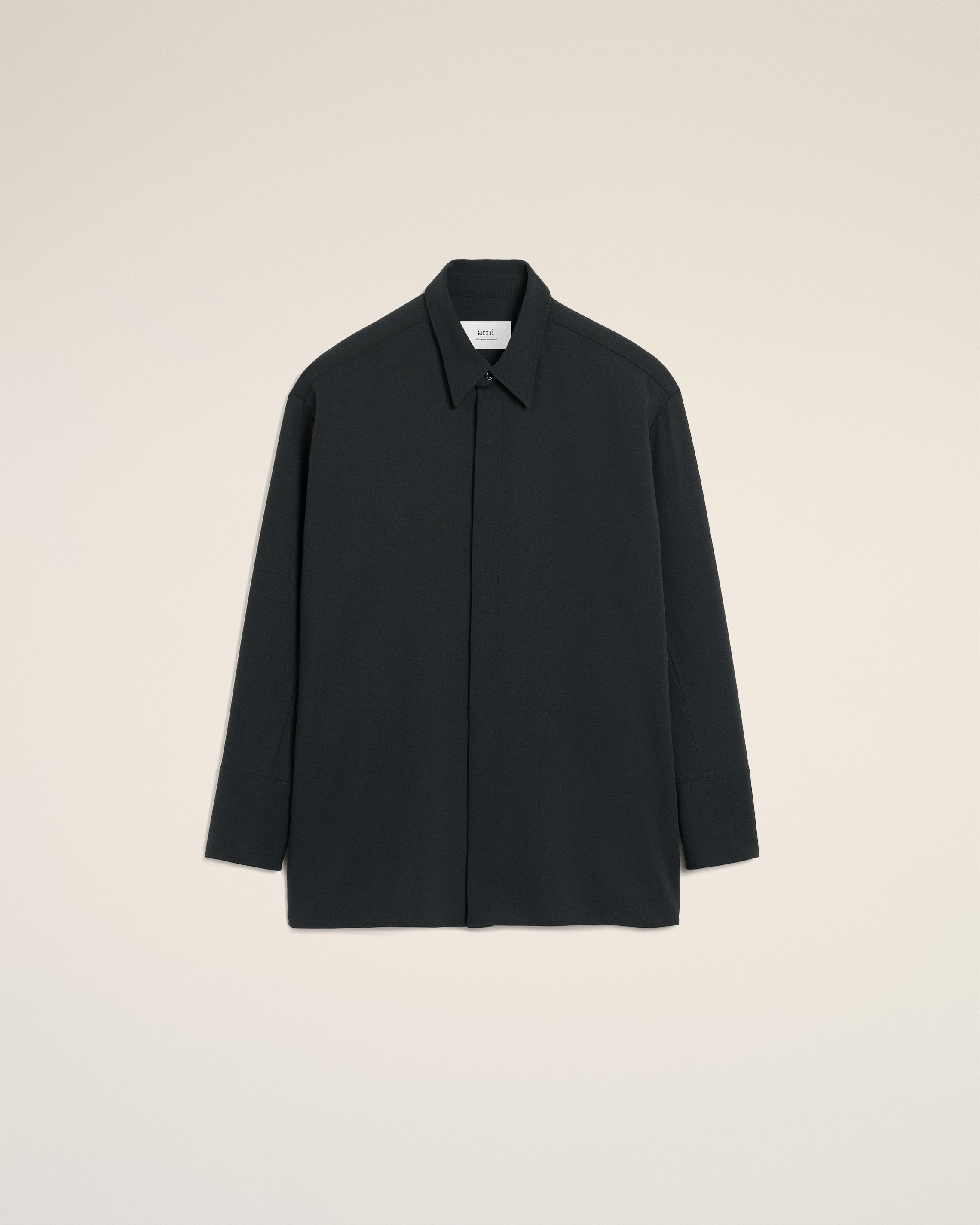 Loose shirt in wool tricotine. Large fit Classic collar Buttoned cuffs Hidden buttoned placket Horn buttons Silver metal placket Ami de Coeur at the middle back Side slits at the bottom Made in Portugal (with love) REF: FSH782.WV0067.020 SIZE & FIT This item is designed to be worn lose. Take your normal size. Model is 177 cm / 5"9 and is wearing a size 36. COMPOSITION & CARE GUIDE Main Material : 100% New Wool Chlorine prohibited Do not tumble dry Dry clean gentle Do not wash Medium iron