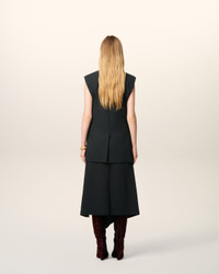BLACK WOOL SLEEVELESS SMOCKING JACKET