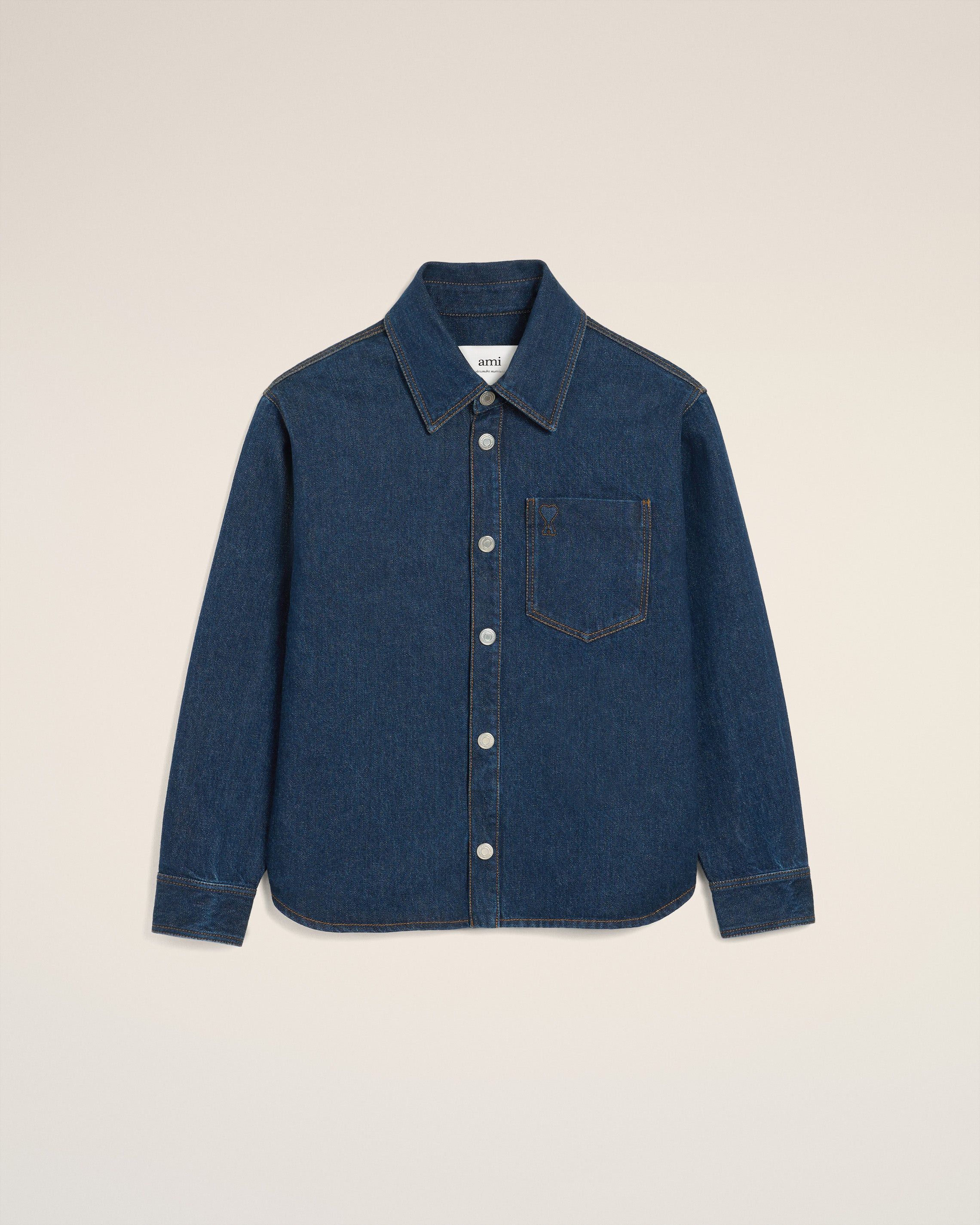 Overshirt in used indigo denim. Unisex product Denim snap buttons in nickel color Embossed and topstitched Ami de Coeur on the chest Tobacco topstitches 70 cm center back length (size XS) 71 cm center back length (size M) Made in Portugal (with love) REF: UJK788.DE0104.402 SIZE & FIT This style is unisex. For man, take your normal size. For woman, take one size down than your usual size. Man model is 186 cm / 6"1 and is wearing a size M. Woman model is 175 cm / 5"8 and is wearing a size XS. COMPOSITION & CARE GUIDE Main Material : 100% Cotton Machine wash at 30°c Chlorine prohibited Do not tumble dry Cool iron Dry clean possible Wash inside out Wash with similar colours