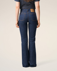 Bootcut fit jeans in raw indigo denim. Bootcut fit Low waist Straight leg slightly flared at the bottom 5 pockets Zipped fly Denim metal rivets and buttons in nickel color "ami alexandre mattiussi" paper jacron on the back Tobacco topstitches Made in Portugal (with love) REF: FTR873.DE0122.402 SIZE & FIT This item is designed for a close fit. Take the next size up for a semi-fitted cut. Woman model is 181 cm / 5"9 and is wearing a size 26. COMPOSITION & CARE GUIDE Main Material : 100% Cotton Pocket Lining : 100% Cotton Machine Wash At 30°C Chlorine Prohibited Do Not Tumble Dry Medium Iron Dry Clean Possible Wash With Similar Colours Wash And Iron Inside Out