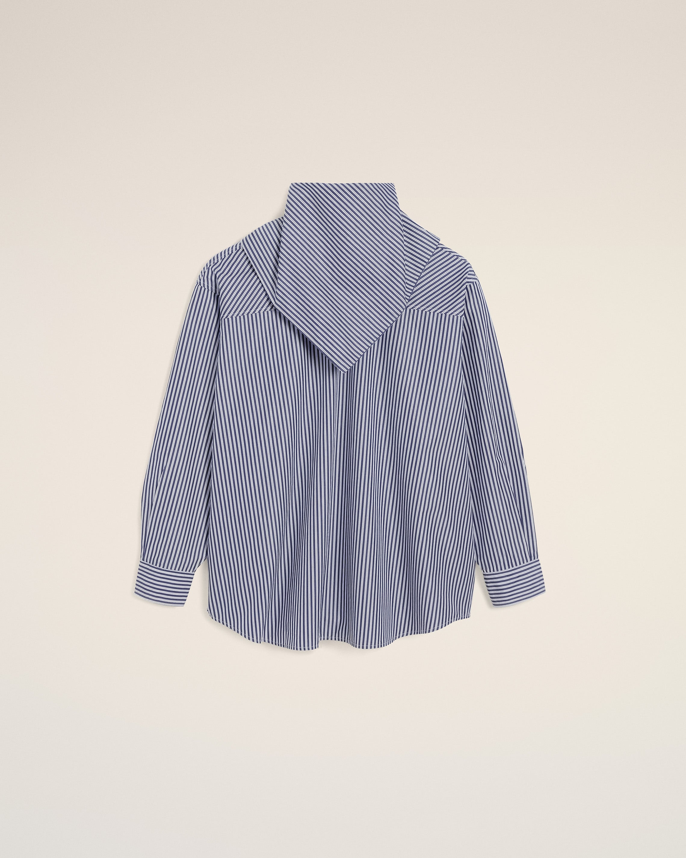 Long sleeves bandana blouse in striped cotton poplin. Unisex product Oversized fit Bandana collar Buttoned cuffs Mother of pearl buttons Horizontal Ami De Coeur silver plate under back gusset Center back length 87,2 (size XS) Center back length 90,2 (size M) Made in Bulgaria (with love) REF: UTP801.CO0133.4901 SIZE & FIT This style is unisex and it's design to be worn oversize. Take your normal size. Man model is 187 cm / 6"2 and is wearing a size M. Woman model is 179 cm / 5"10 and is wearing a size XS. COMPOSITION & CARE GUIDE Main Material : 100% Cotton Chlorine prohibited Do not tumble dry Cool iron Machine wash at 30°c gentle Dry clean gentle
