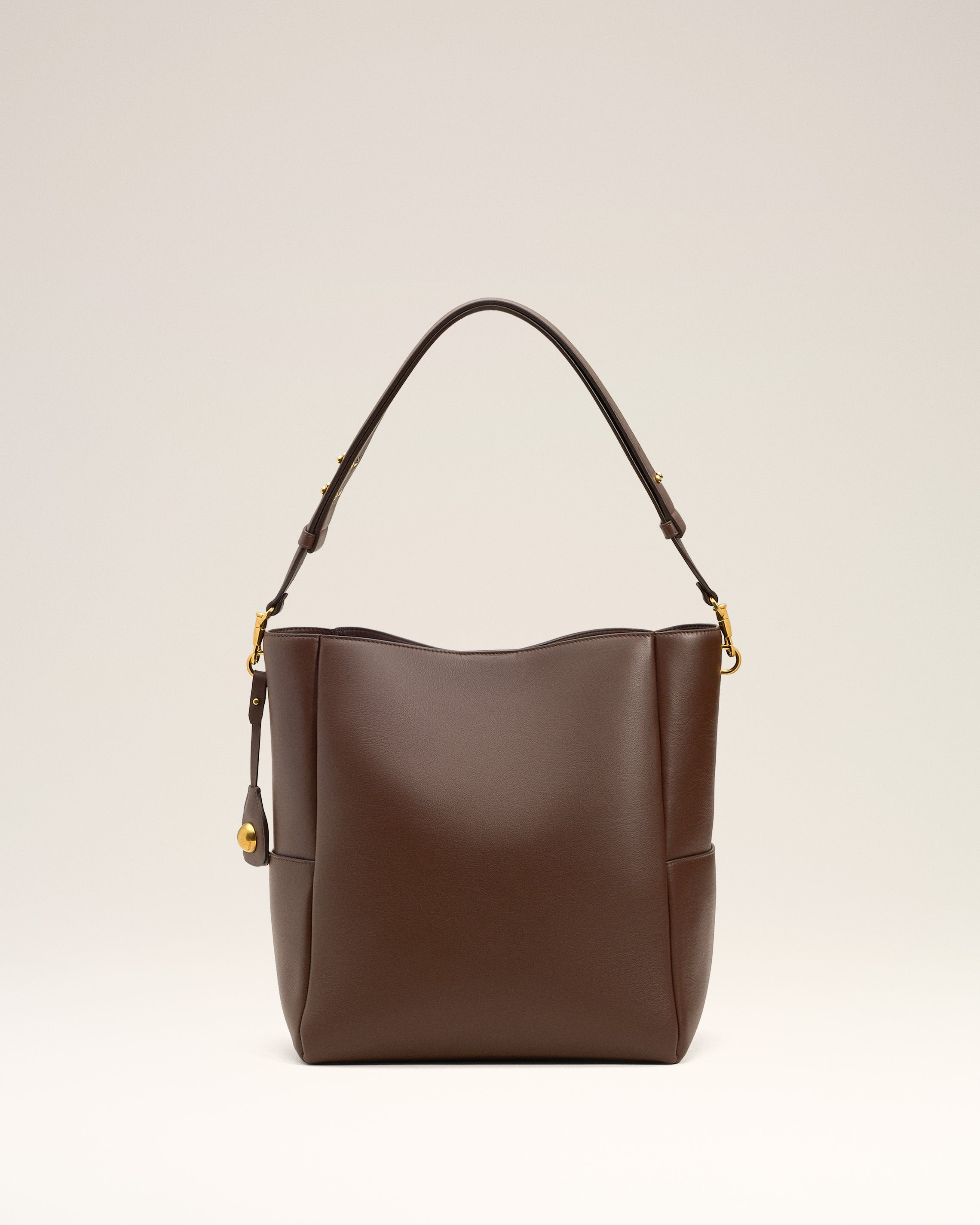 BROWN SMOOTH LEATHER CARROUSEL BUCKET BAG