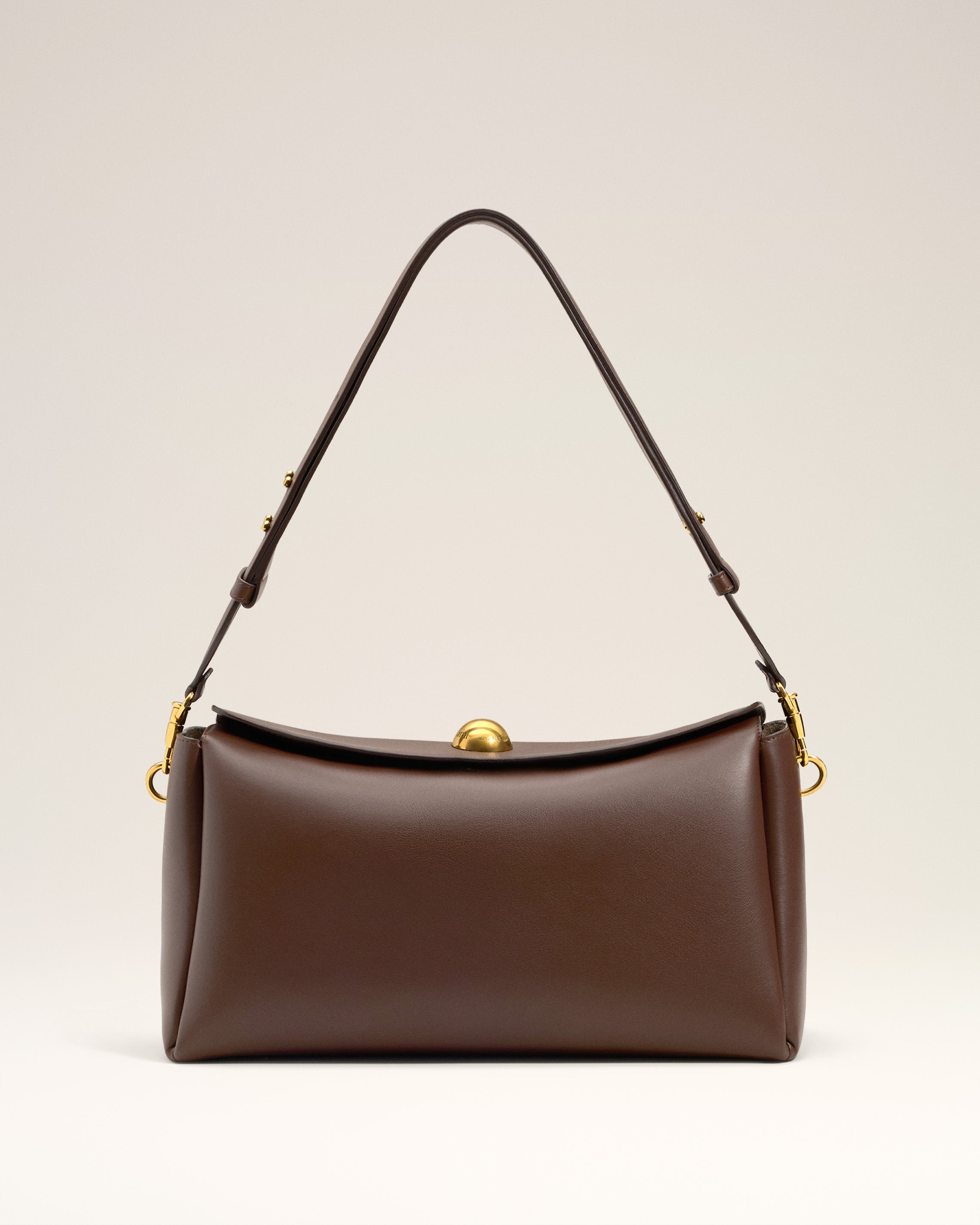 Carrousel medium bag in smooth leather. Unisex product Calfskin Adjustable and removable leather strap, crossbody or shoulder carry Magnetic flap closure One main compartment with an inside patched pocket Metal hardware in vibrated brass color Half sphere in metal with engraved "ami alexandre mattiussi" logo Suede leather lining Size: 33 x 17.5 x 12 cm Made in Spain (with love) REF: ULL712.AL0103.222 SIZE & FIT Size: 33 x 17.5 x 12 cm COMPOSITION & CARE GUIDE Main Material : 100% Calfskin Main Lining : 100% Calfskin Do not wash