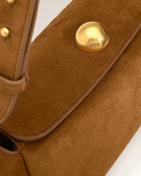 Carrousel bag in suede leather and smooth leather. Unisex product Cow leather Adjustable and removable leather strap, crossbody or shoulder carry Magnetic flap closure Metal hardware in vibrated brass color One main compartment with an inside patched pocket Suede leather lining Half sphere in metal with engraved "ami alexandre mattiussi" logo Size: 26 x 12 x 10.5 cm Made in Spain (with love) REF: ULL027.AL0136.216 SIZE & FIT Size: 26 x 12 x 10.5 cm COMPOSITION & CARE GUIDE Main Material : 100% Cow Leather Main Lining : 100% Calfskin Our leathergoods are made from delicate materials. To keep the original aspect of the leather as long as possible, please avoid contact with abrasive and oily substances. Make sure not to expose them at the direct light for too long and to wipe them with a soft and dry cloth when wet. To avoid deformations, insure to not overload them. Keep them in their dust bag and safe from humidity.