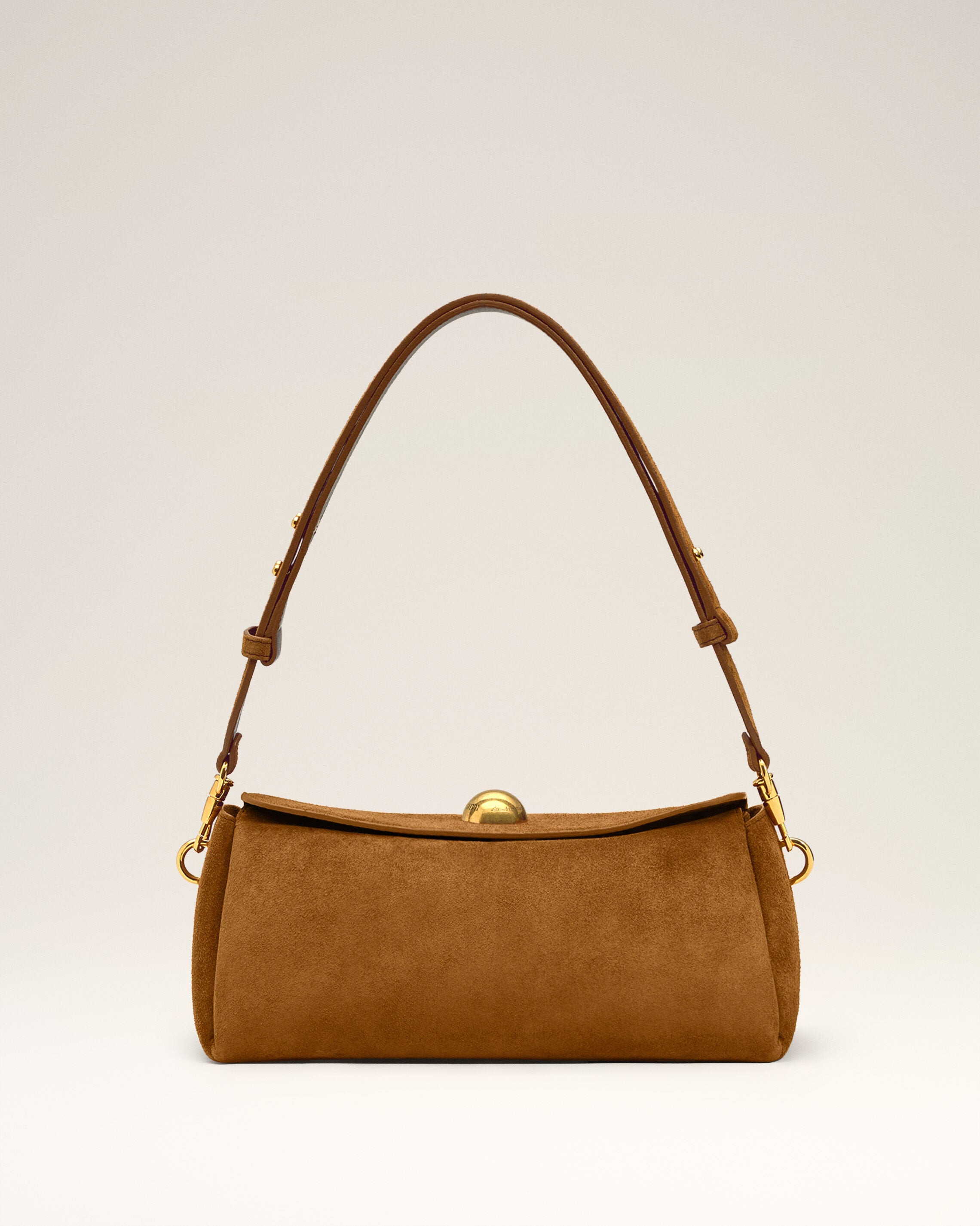 Carrousel bag in suede leather and smooth leather. Unisex product Cow leather Adjustable and removable leather strap, crossbody or shoulder carry Magnetic flap closure Metal hardware in vibrated brass color One main compartment with an inside patched pocket Suede leather lining Half sphere in metal with engraved "ami alexandre mattiussi" logo Size: 26 x 12 x 10.5 cm Made in Spain (with love) REF: ULL027.AL0136.216 SIZE & FIT Size: 26 x 12 x 10.5 cm COMPOSITION & CARE GUIDE Main Material : 100% Cow Leather Main Lining : 100% Calfskin Our leathergoods are made from delicate materials. To keep the original aspect of the leather as long as possible, please avoid contact with abrasive and oily substances. Make sure not to expose them at the direct light for too long and to wipe them with a soft and dry cloth when wet. To avoid deformations, insure to not overload them. Keep them in their dust bag and safe from humidity.