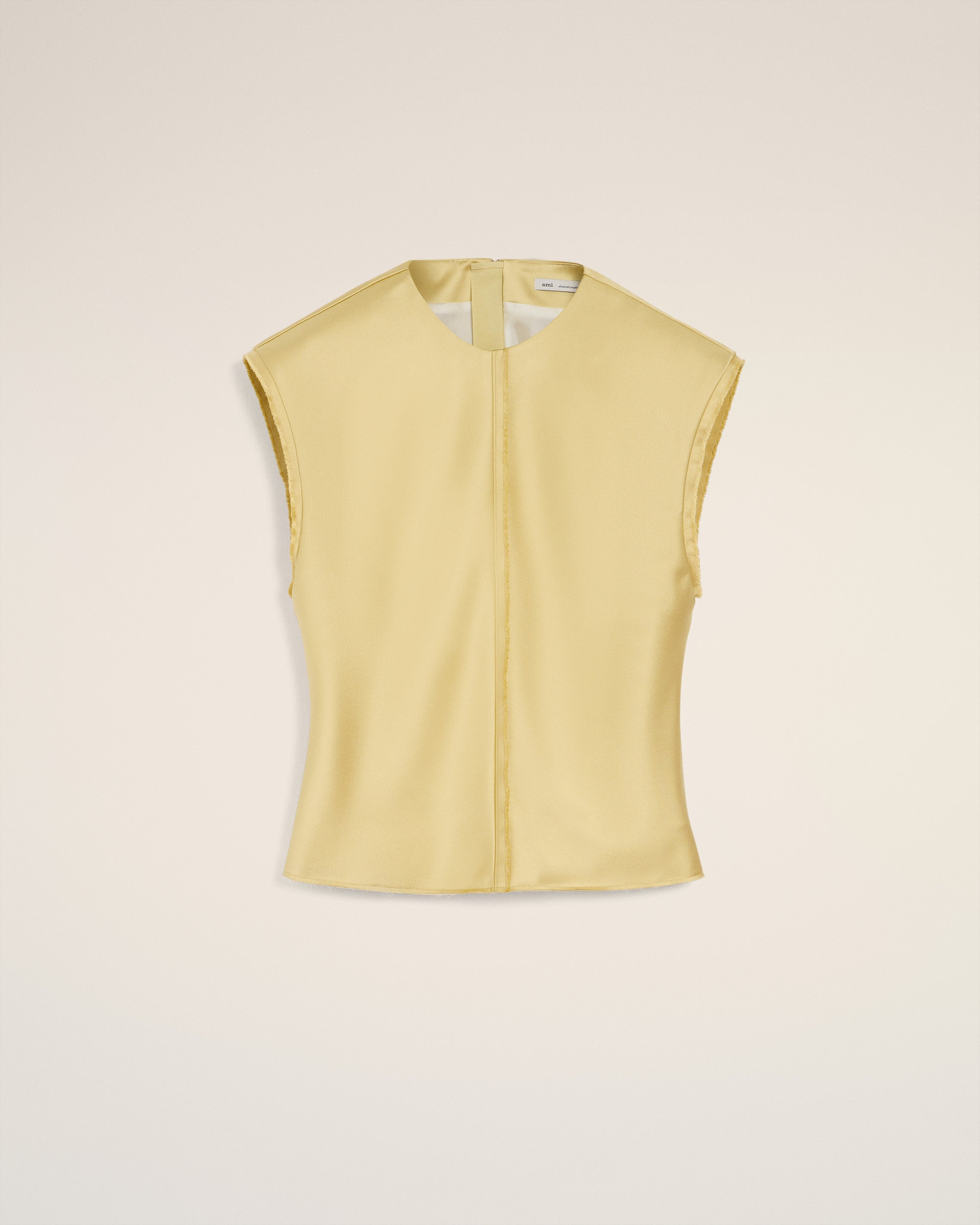 Sleeveless top with raw edge details in satin. Fitted fit Invisible zip at back Fully lined Raw edge finishing at the bottom, armholes and center front 53cm center back length (size 36) Made in Romania (with love) REF: FTP814.PL0037.399 SIZE & FIT This item is designed for a close fit. Take your normal size. Model is 177 cm / 5"9 and is wearing a size 36. COMPOSITION & CARE GUIDE Main Material : 95% Polyester 5% Elastane Main Lining : 100% Polyester Do not wash Chlorine prohibited Do not tumble dry Cool iron Dry clean petroleum solvent only on a gentle process