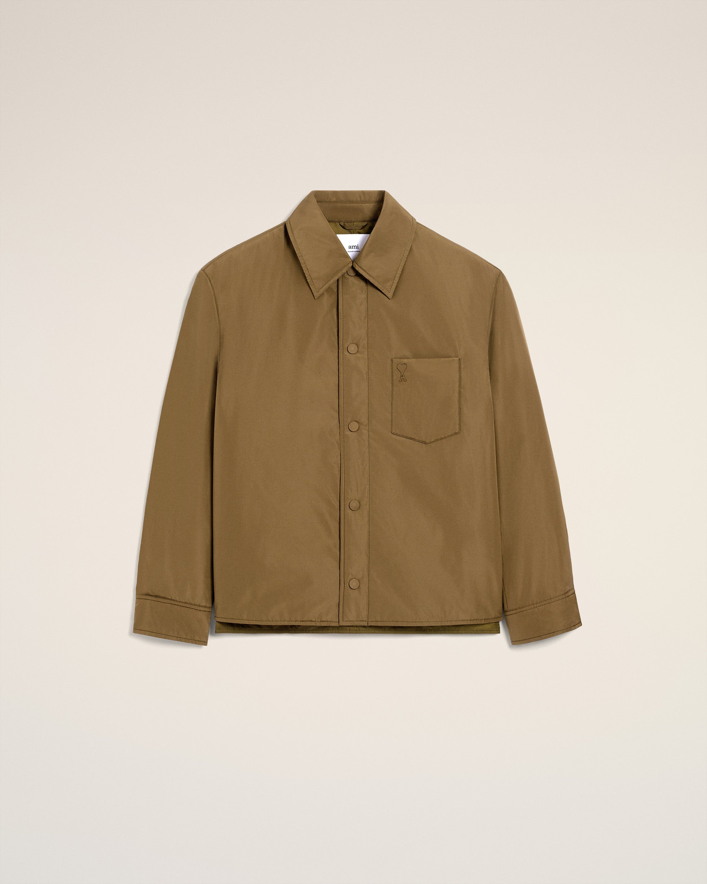 Padded overshirt in technical taffetas. Front closure and cuffs with covered snap buttons in main fabric Patch pocket on the chest Fully lined and padded Embossed and topstitched Ami de Coeur on the chest pocket Water repellent fabric 73 cm center back lenght (size M) Made in Romania (with love) REF: HJK829.PL0039.298 SIZE & FIT Fits true to size. Take your normal size. Model is 185 cm / 6"1 and is wearing a size M. COMPOSITION & CARE GUIDE Main Material : 100% Polyester Body Lining : 100% Polyamide Padding : 100% Polyester Do not wash Chlorine prohibited Do not tumble dry Cool iron Dry clean gentle