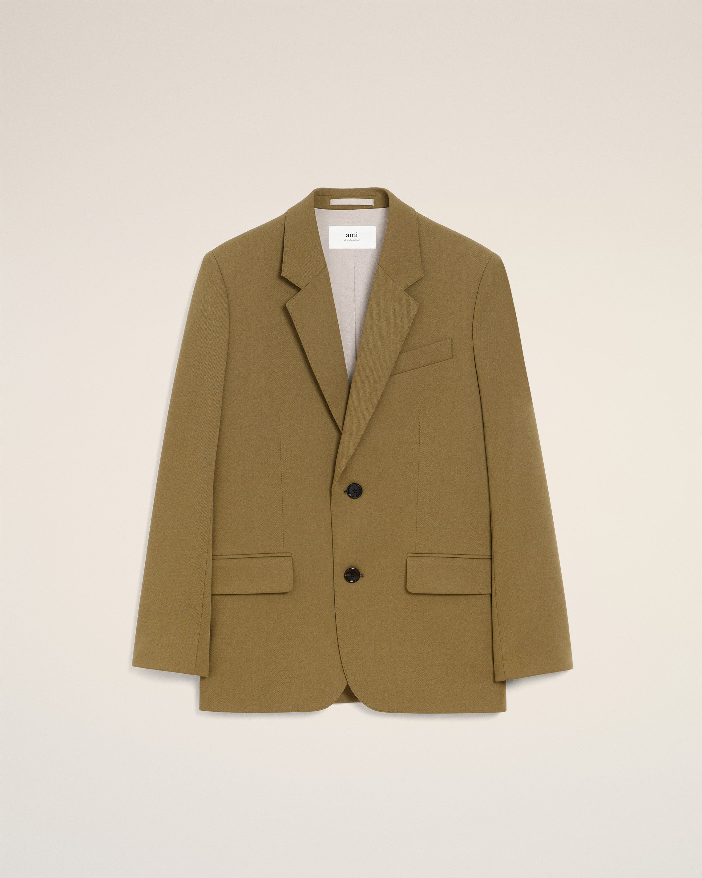 Two buttons jacket in wool tricotine. Boxy fit Notch collar Horn buttons 2 buttons single breasted 2 double piped pockets 1 chest piped pocket 3 inside pockets Buttoned bottom sleeves 2 back slits Fully lined AMF stitches on the collar, lapel and flap pockets 77 cm center back length (size 36) Made in Romania (with love) REF: FBV001.WV0067.298 SIZE & FIT This item is designed to be worn lose. Take your normal size. Model is 179 cm / 5"10 and is wearing a size 36. COMPOSITION & CARE GUIDE Main Material : 100% New Wool Body Lining : 50% Polyester 50% Cotton Sleeves Lining : 54% Acetate 45% Viscose 1% Polyester Pocket Lining : 65% Polyester 35% Cotton Do not wash Chlorine prohibited Do not tumble dry Cool iron Dry clean gentle