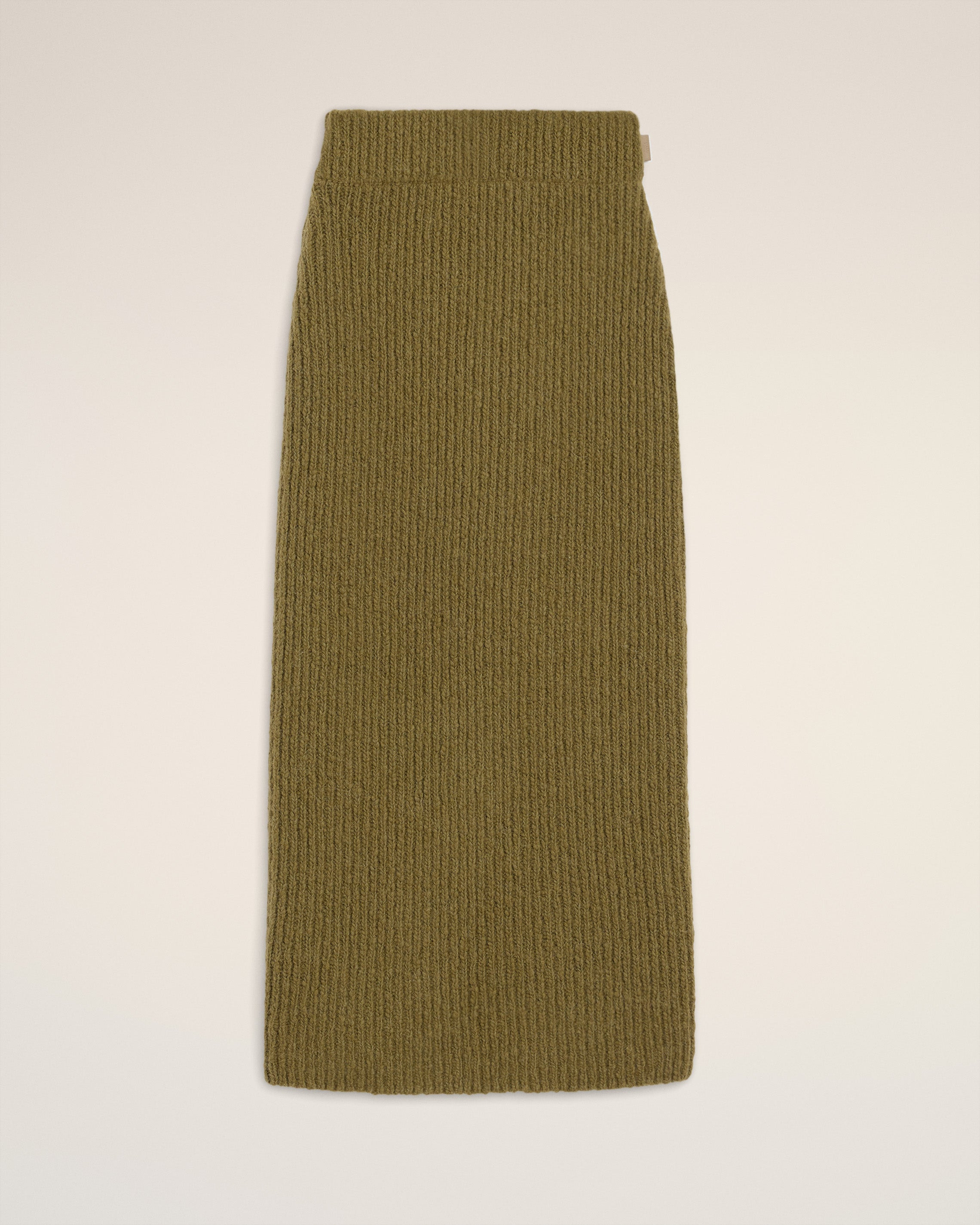 Skirt in felted and chunky wool ribbed knit. Ribbed stitch "ami" leather label 85 cm center back length (size S) Made in Italy (with love) REF: FSK432.KN0112.298 SIZE & FIT Fits true to size. Take your normal size. Model is 177 cm / 5"9 and is wearing a size S. COMPOSITION & CARE GUIDE Main Material : 45% Wool 42% Cotton 13% Alpaca Hand wash low temperature Chlorine prohibited Do not tumble dry Cool iron Dry clean possible Contains non-textile parts of animal origin