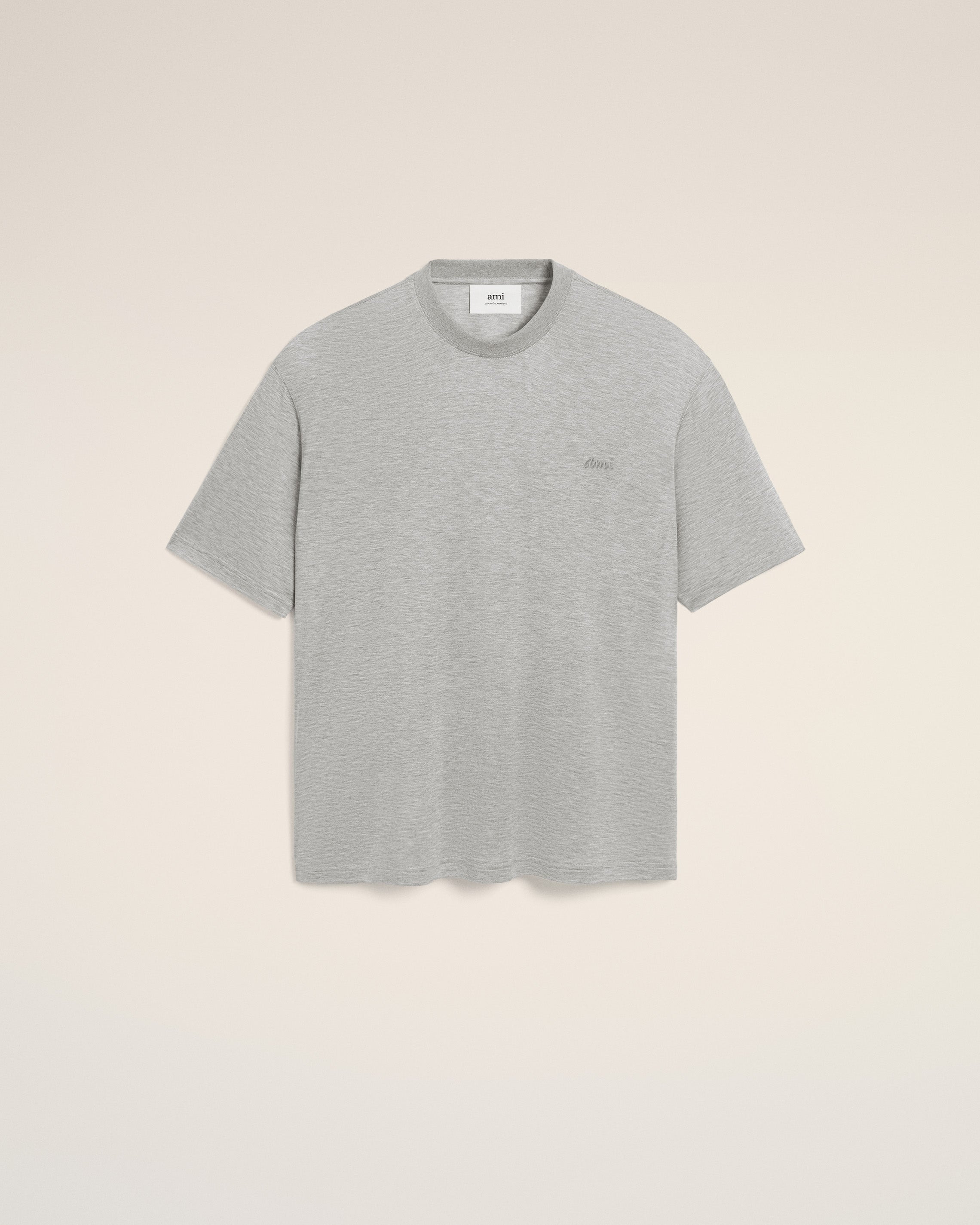 T-shirt in mercerized cotton and silk jersey. Unisex product Boxy fit Tonal italic "ami" chest embroidery Tonal "ami" embroidery under back neckline 65,5cm center back length (size XS) 70,5cm center back length (size M) Made in Portugal (with love) REF: UTS333.JE0124.055 SIZE & FIT This style is unisex. For man, take your normal size. For woman, take one size down than your usual size. Man model is 182,5 cm / 5"11 and is wearing a size M. Woman model is 177 cm / 5"9 and is wearing a size XS. COMPOSITION & CARE GUIDE Main Material : 88% Viscose 12% Silk Chlorine prohibited Do not wash Do not tumble dry Cool iron Dry clean possible