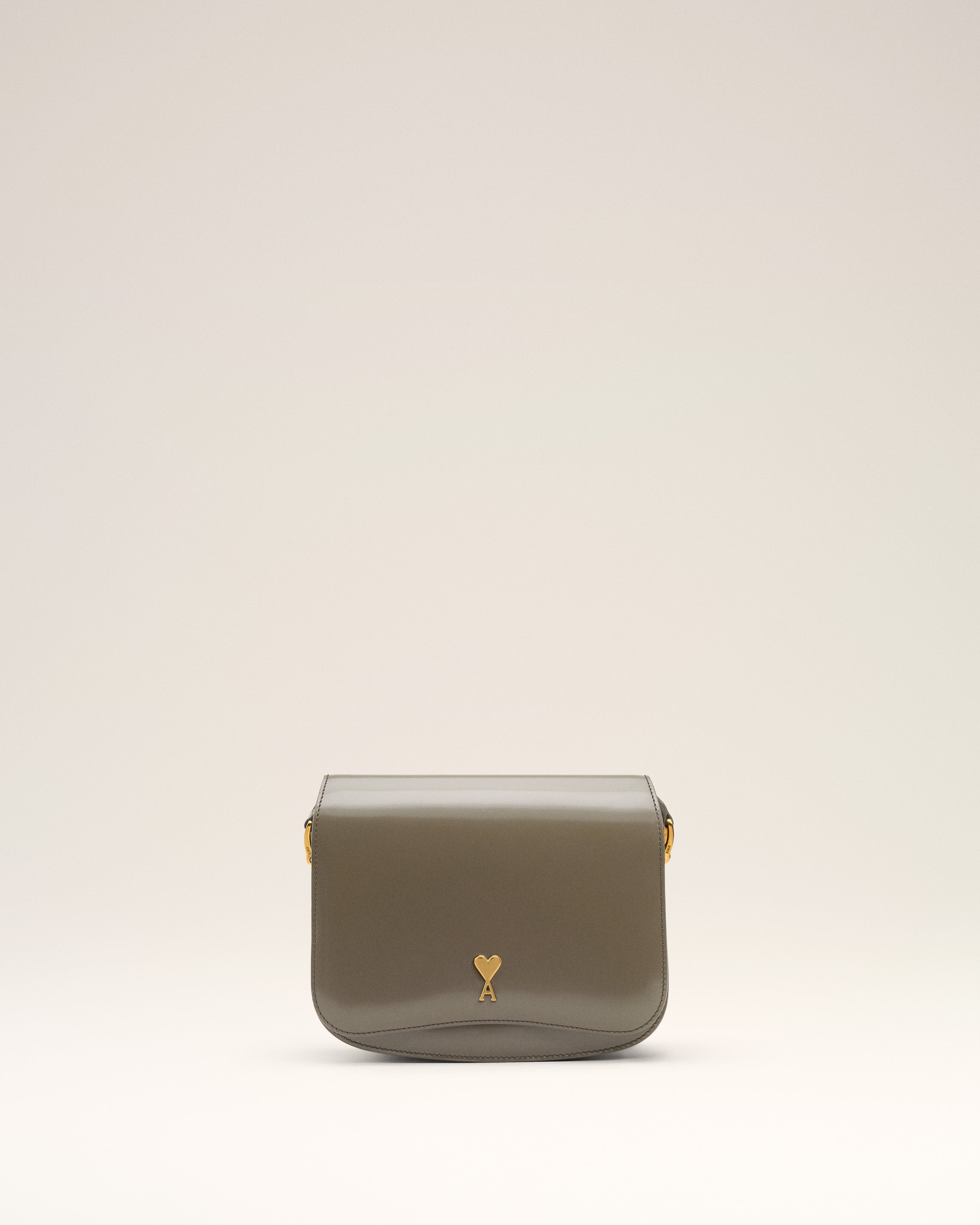 Paris Paris bag in glazed leather. Unisex product Calfskin Leather Adjustable leather strap, crossbody or shoulder carry Metal hardware in vibrated brass color One central compartment with a patched pocket and one front compartment Suede lambskin lining Ami de Coeur stud Size: 20 x 15 x 4.5 cm Made in Morocco (with love) REF: ULL717.AL0139.0516 SIZE & FIT Size: 20 x 15 x 4.5 cm COMPOSITION & CARE GUIDE Main Material : 100% Calfskin Main Lining : 100% Lamb Leather Do not wash
