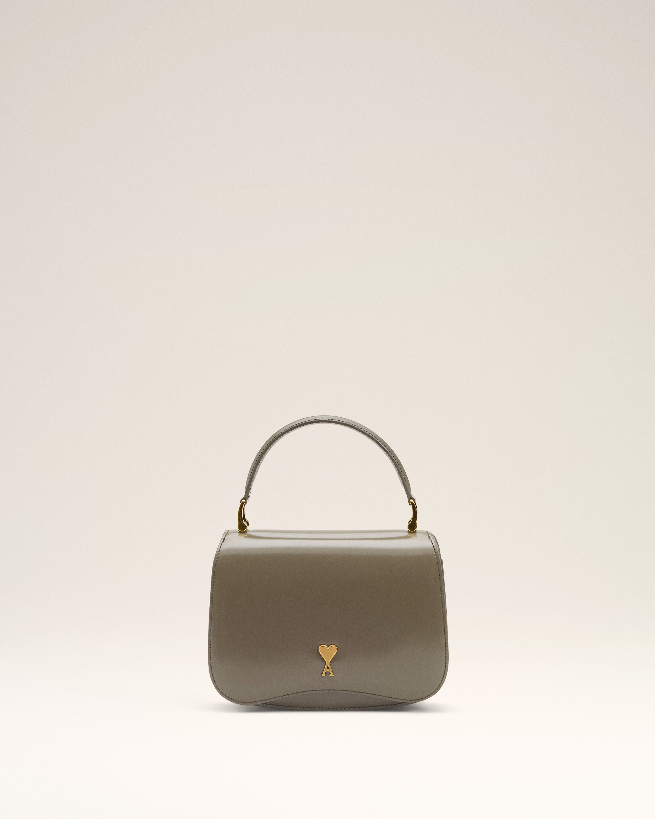 Top handle Paris Paris bag in glazed leather. Unisex product Calfskin Leather Adjustable and removable leather strap, crossbody or hand carry Metal hardware in vibrated brass color One central compartment with a patched pocket and one front compartment Suede lambskin lining Ami de Coeur stud Size: 19 x 13 x 4 cm Made in Morocco (with love) REF: ULL718.AL0139.0516 SIZE & FIT Size: 19 x 13 x 4 cm COMPOSITION & CARE GUIDE Main Material : 100% Calfskin Main Lining : 100% Lamb Leather Do not wash