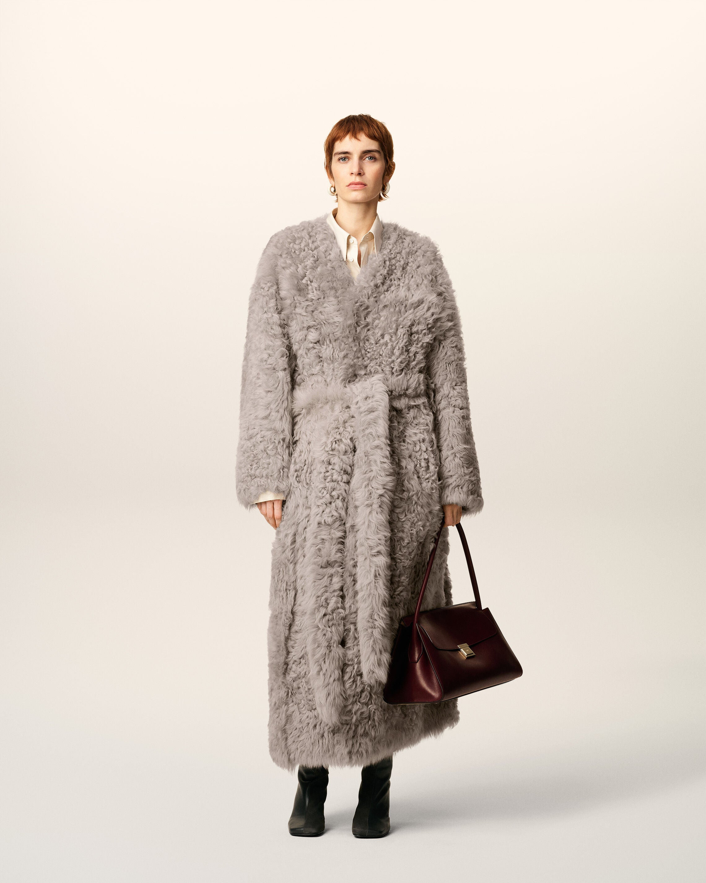 GREY SHEARLING LONG COAT