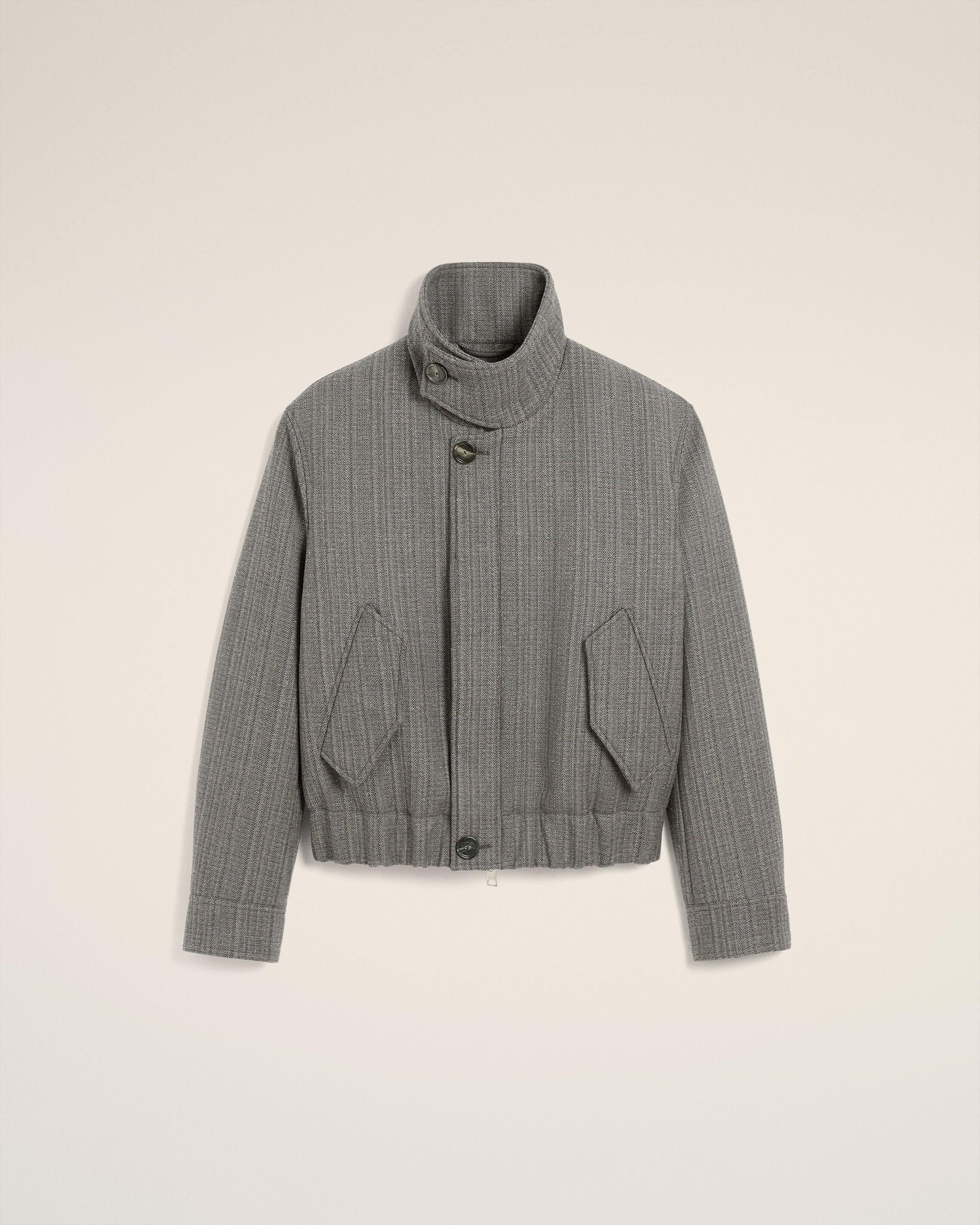 GREY WOOL HERRINGBONE HARRINGTON JACKET
