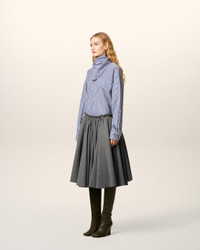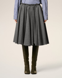Midi skirt in wool flannel. Straight fit Invisible zip at back Side pockets Low hem with clean edge finishing 63 cm middle back length (size 36) Made in Madagascar (with love) REF: FSK444.WV0058.050 SIZE & FIT Fits true to size. Take your normal size. Model is 179 cm / 5"10 and is wearing a size 36. COMPOSITION & CARE GUIDE Main Material : 100% New Wool Main Lining : 60% Acetate 40% Cupro Do not wash Chlorine prohibited Do not tumble dry Cool iron Dry clean gentle