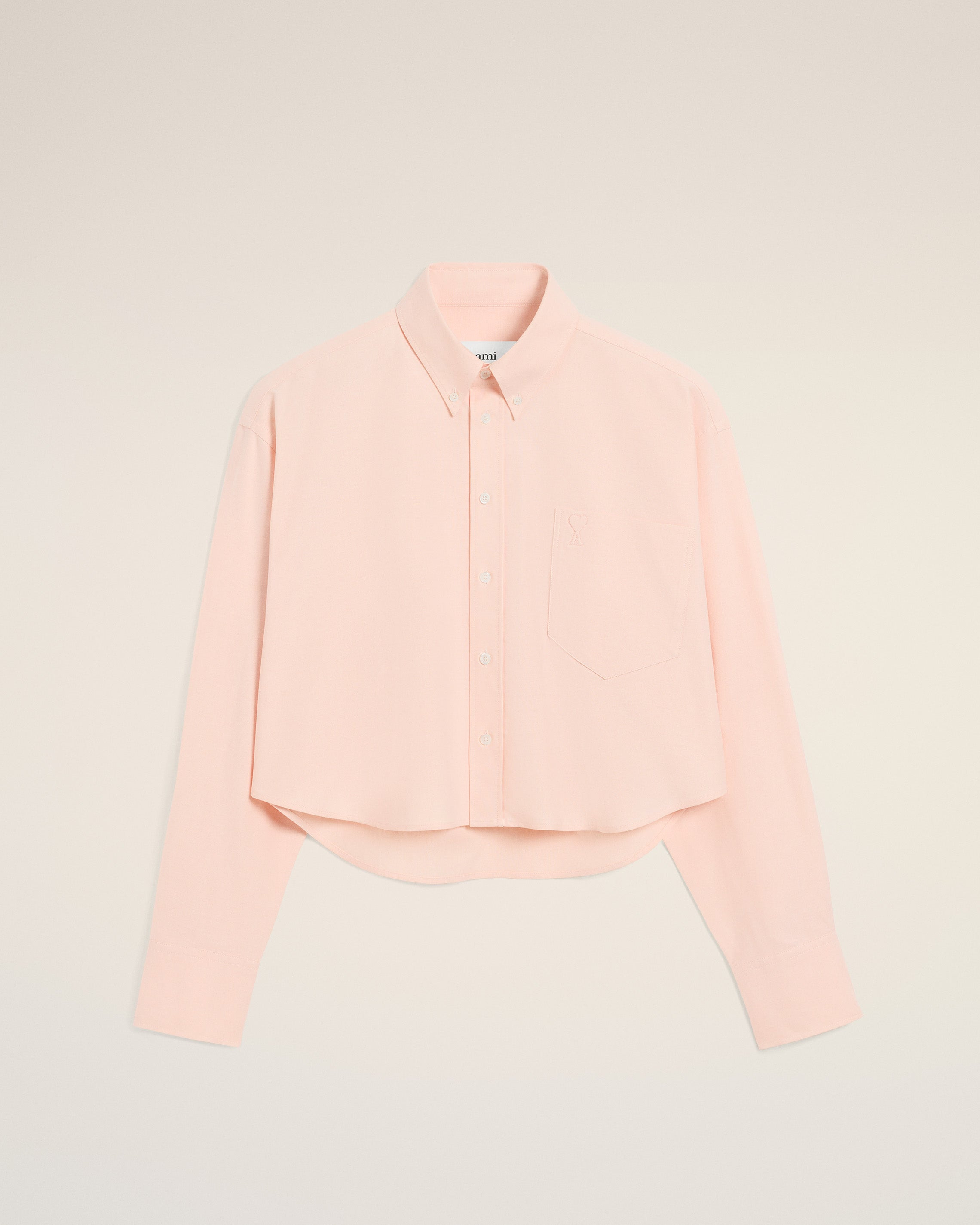 Button down cropped oversized shirt in cotton Oxford. Cropped oversized fit Button down collar Buttoned tab on frond and cuffs Mother of pearl buttons Patch pocket Embossed and topstitched Ami de Coeur on pocket 58 cm center back length (size 36) Made in Portugal (with love) REF: FSH770.CO0031.680 SIZE & FIT This item is designed to be worn lose. Take your normal size. Model is 181 cm / 5"11 and is wearing a size 36. COMPOSITION & CARE GUIDE Main Material : 100% Cotton Chlorine prohibited Do not tumble dry Dry clean gentle Cool iron Machine wash at 30°c gentle