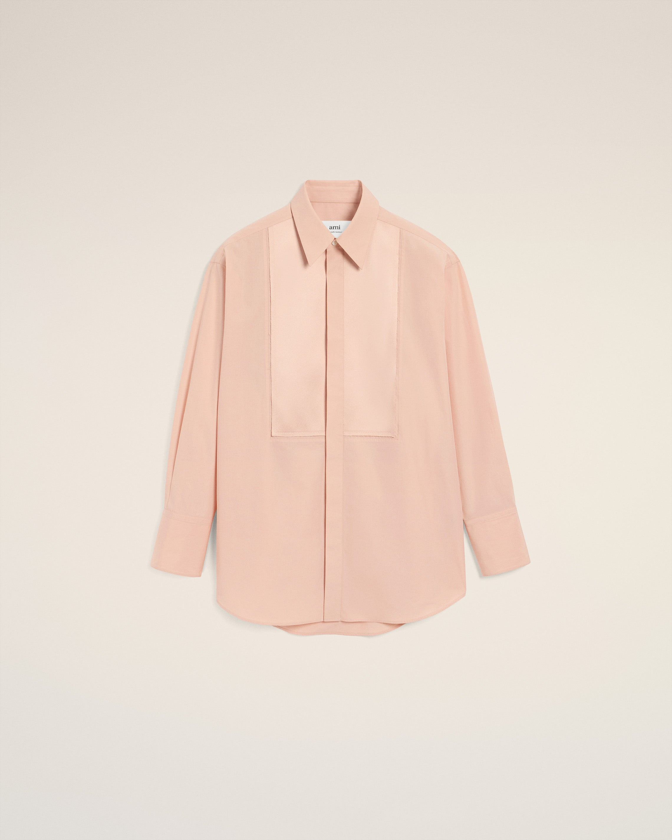 Long sleeves shirt with bi material bib in cotton poplin and satin. Unisex product Oversized fit Classic collar Hidden button placket at the front Buttoned cuffs Mother of pearl buttons Woven label applied to satin raw edge patch at the center back yoke Raw edge finishes Center back length: 90 cm (size M) Made in Madagascar (with love) REF: USH778.CO0063.680 SIZE & FIT This style is unisex and it's design to be worn oversize. Take your normal size. Man model is 183 cm / 6"0 and is wearing a size M. Woman model is 181 cm / 5"11 and is wearing a size XS. COMPOSITION & CARE GUIDE Main Material : 100% Cotton Secondary Material : 95% Polyester 5% Elastane Collar : 100% Vinyl Polychloride Do not wash Chlorine prohibited Do not tumble dry Cool iron Dry clean gentle