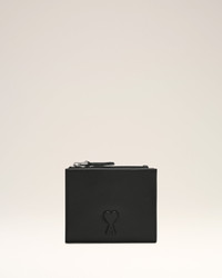 Voulez-Vous folded wallet in smooth leather. Herringbone cotton canvas lining Ami de Coeur stud Four card compartments and one note compartment One zipped coin pocket Snap button fastening Metal hardware in vibrated silver color Size: 10.5x8.5 cm Made in Morocco (with love) REF : USL201.AL0052.001 SIZE & FIT Size: 10.5x8.5 cm COMPOSITION & CARE GUIDE 100% Cow Leather Our leathergoods are made from delicate materials. To keep the original aspect of the leather as long as possible, please avoid contact with abrasive and oily substances. Make sure not to expose them at the direct light for too long and to wipe them with a soft and dry cloth when wet. To avoid deformations, insure to not overload them. Keep them in their dust bag and safe from humidity.
