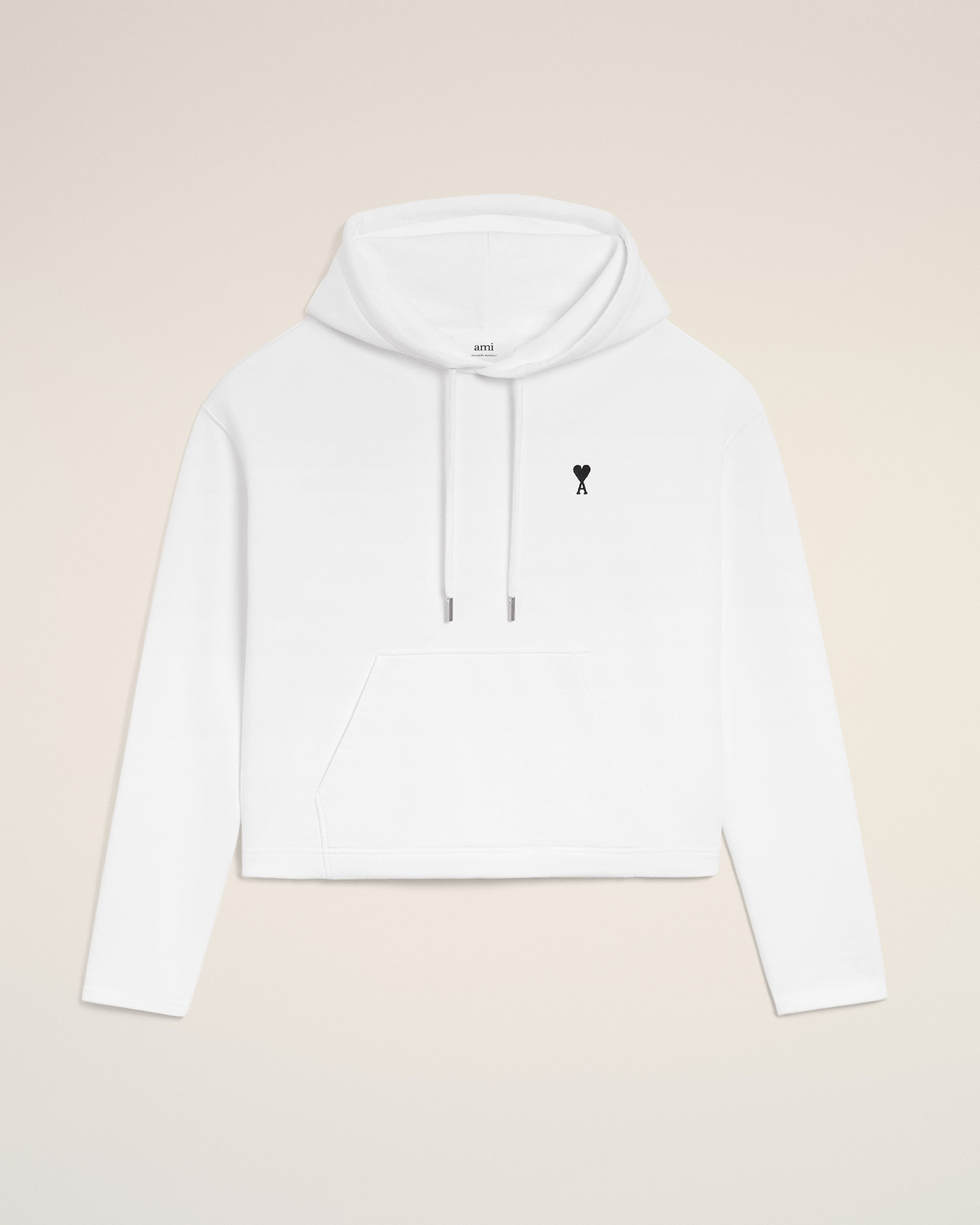 WHITE COTTON CONTRASTED AMI DE COEUR HOODIE