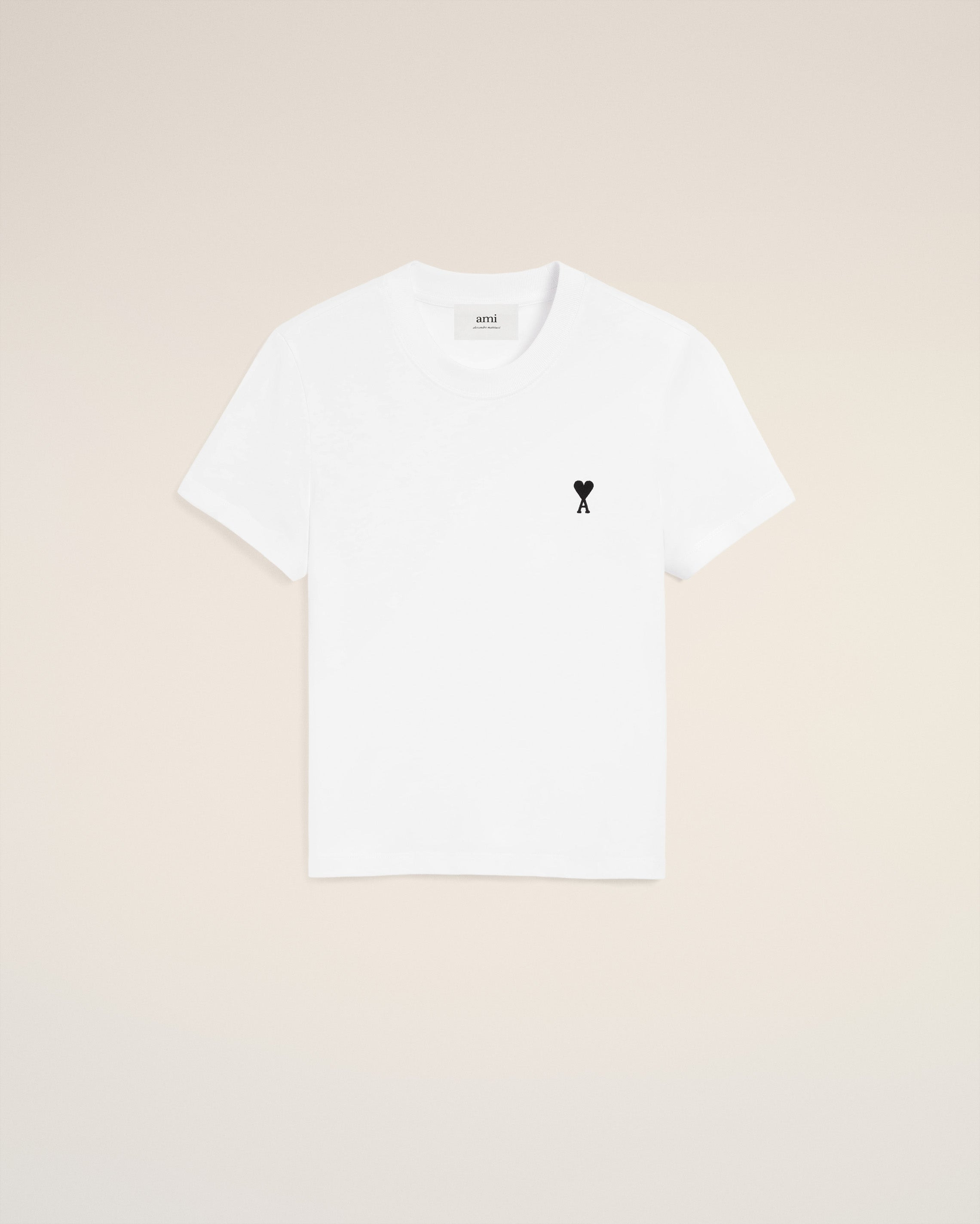 WHITE COTTON CROPPED AMI DE COEUR T-SHIRT