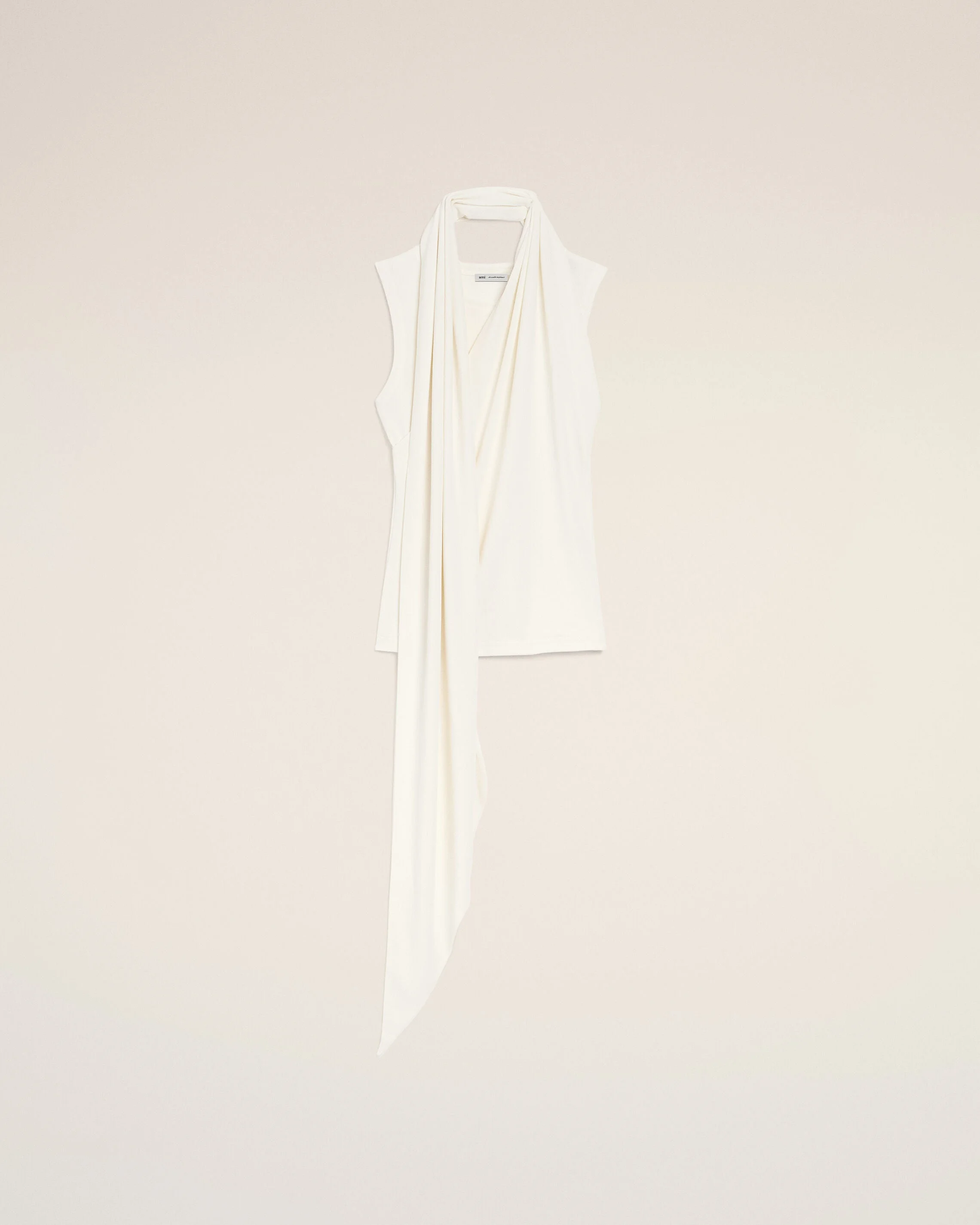 WHITE JERSEY SLEEVELESS LAVALLIERE TOP