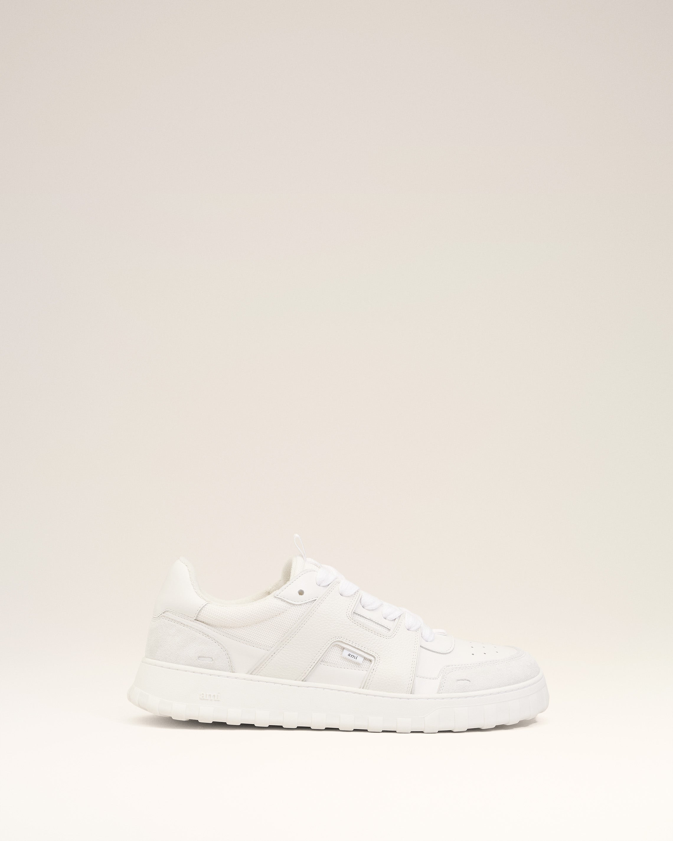 Low top lace up sneakers in smooth leather. Unisex product Exclusive sole developed by Ami Paris Terry cloth lining Inserts in grained leather, suede leather and in mesh. Embossed Ami de Coeur logo tonal at the back Woven ami label on the external side of the sneakers Embossed "ami alexandre mattiussi" logo tonal on the insole Made in Portugal (with love) REF: USN504.AL0126.100 SIZE & FIT Fits true to size. Take your normal size. COMPOSITION & CARE GUIDE Main Material : 100% Cow Leather Secondary Material : 100% Cow Leather Main Lining : 100% Cow Leather Outsole : 100% Cow Leather Do not wash