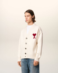 Cardigan in felted merino wool knit. Unisex product "ami" engraved horn buttons Intarsia knitted Ami de Coeur on the chest Inside out seams Jersey stitch 64 cm center back length (size M) 58 cm center back length (size XS) Made in Portugal (with love) REF: UKC367.018.154 SIZE & FIT This style is unisex. For man, take your normal size. For woman, take one size down than your usual size. Man model is 186 cm / 6"1 and is wearing a size M. Woman model is 178 cm / 5"10 and is wearing a size XS. COMPOSITION & CARE GUIDE Main Material : 100% Wool Hand wash low temperature Chlorine prohibited Do not tumble dry Dry flat Cool iron Dry clean possible Contains non-textile parts of animal origin