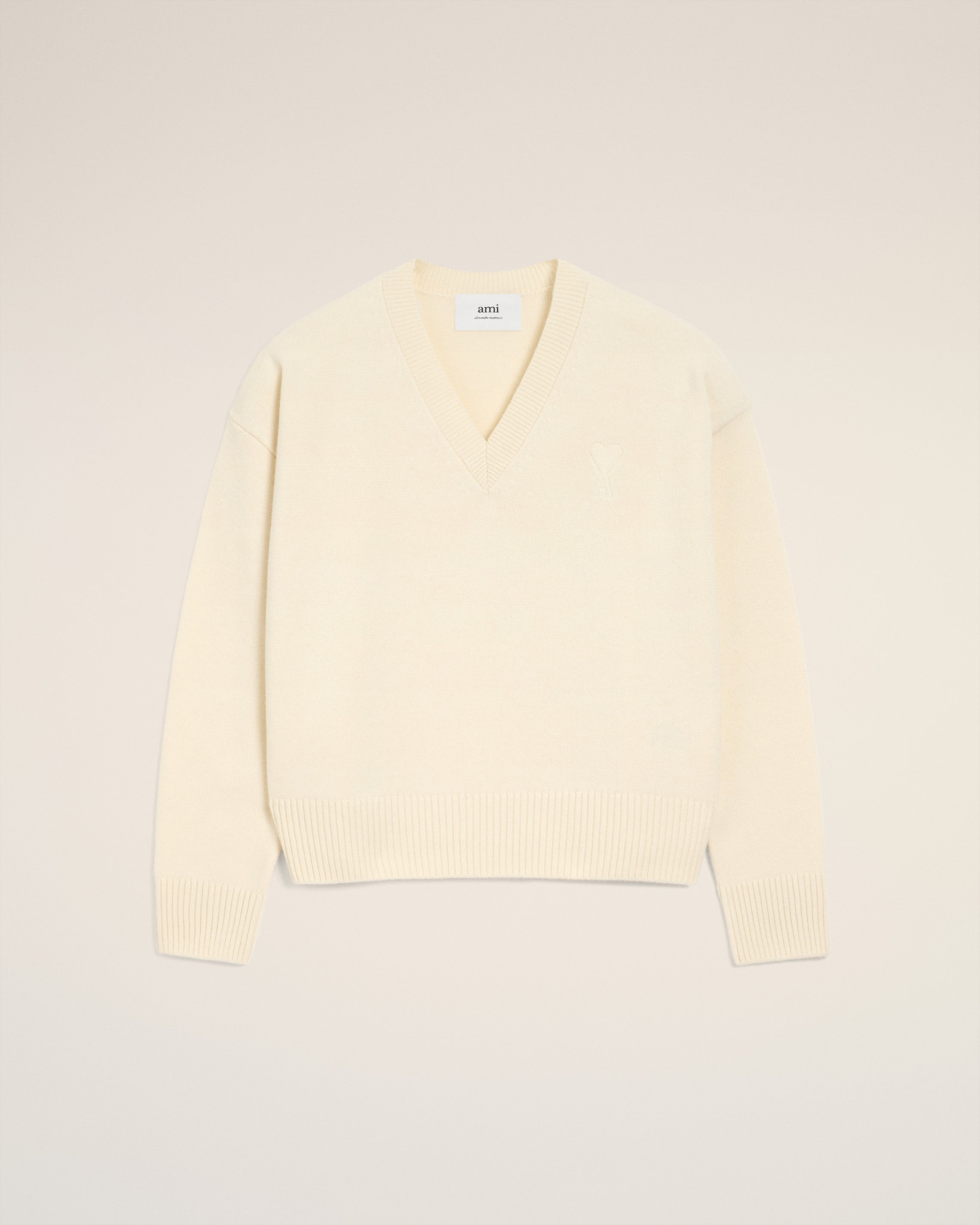 WHITE WOOL AMI DE COEUR V NECK SWEATER