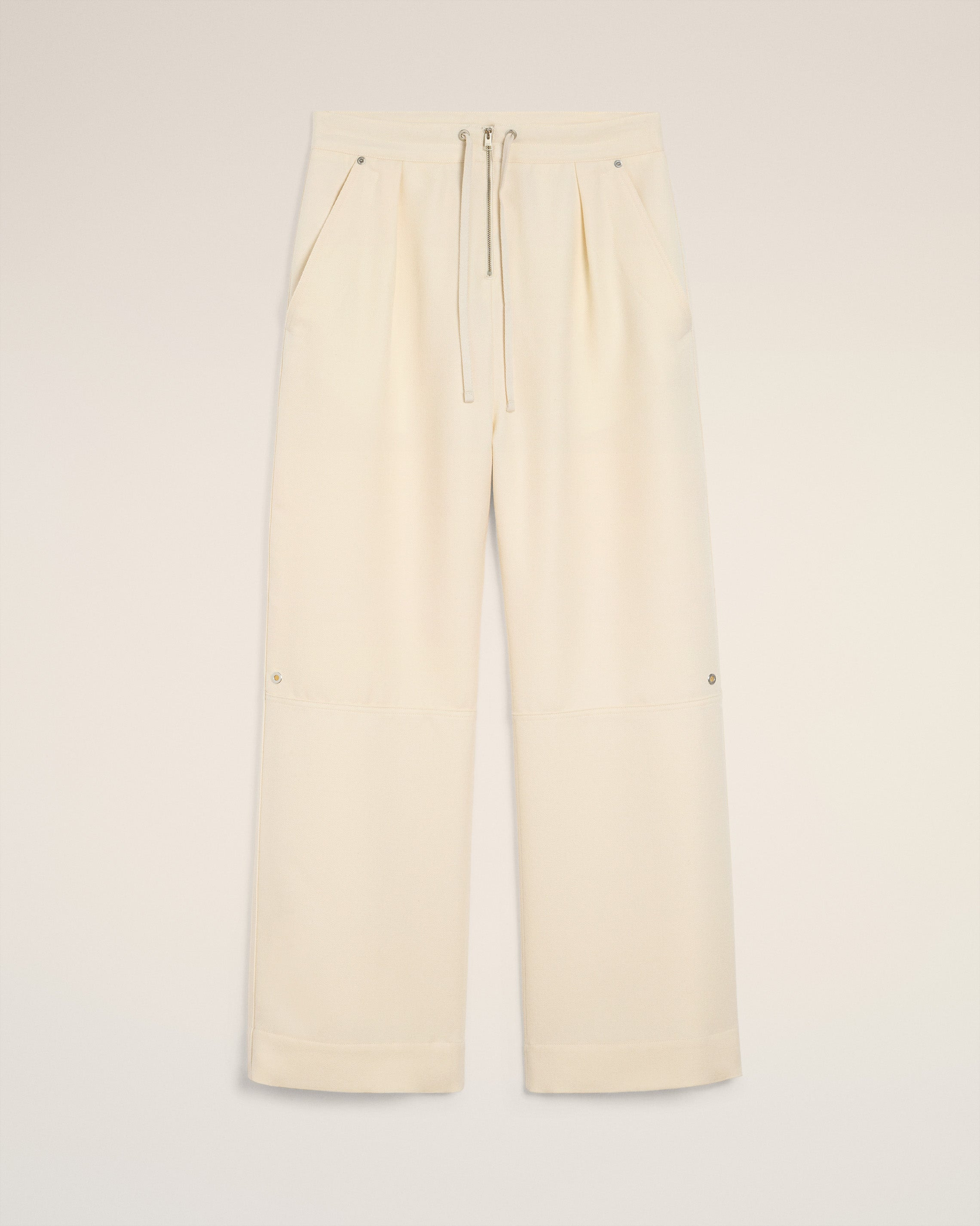 Zipped trousers in wool gabardine. Wide fit Visible zipped fly Pockets with invisible snap buttons "ami alexandre mattiussi" leather label on the back Drawstrings at the belt Details with metal eyelets and studs 33 cm bottom leg width (size M) Made in Portugal (with love) REF: HTR832.WV0088.185 SIZE & FIT This item is designed to be worn lose. Take your normal size. Model is 186 cm / 6"1 and is wearing a size M. COMPOSITION & CARE GUIDE Main Material : 100% New Wool Pocket Lining : 65% Polyester 35% Cotton Do not wash Chlorine prohibited Do not tumble dry Cool iron Dry clean gentle Contains non-textile parts of animal origin