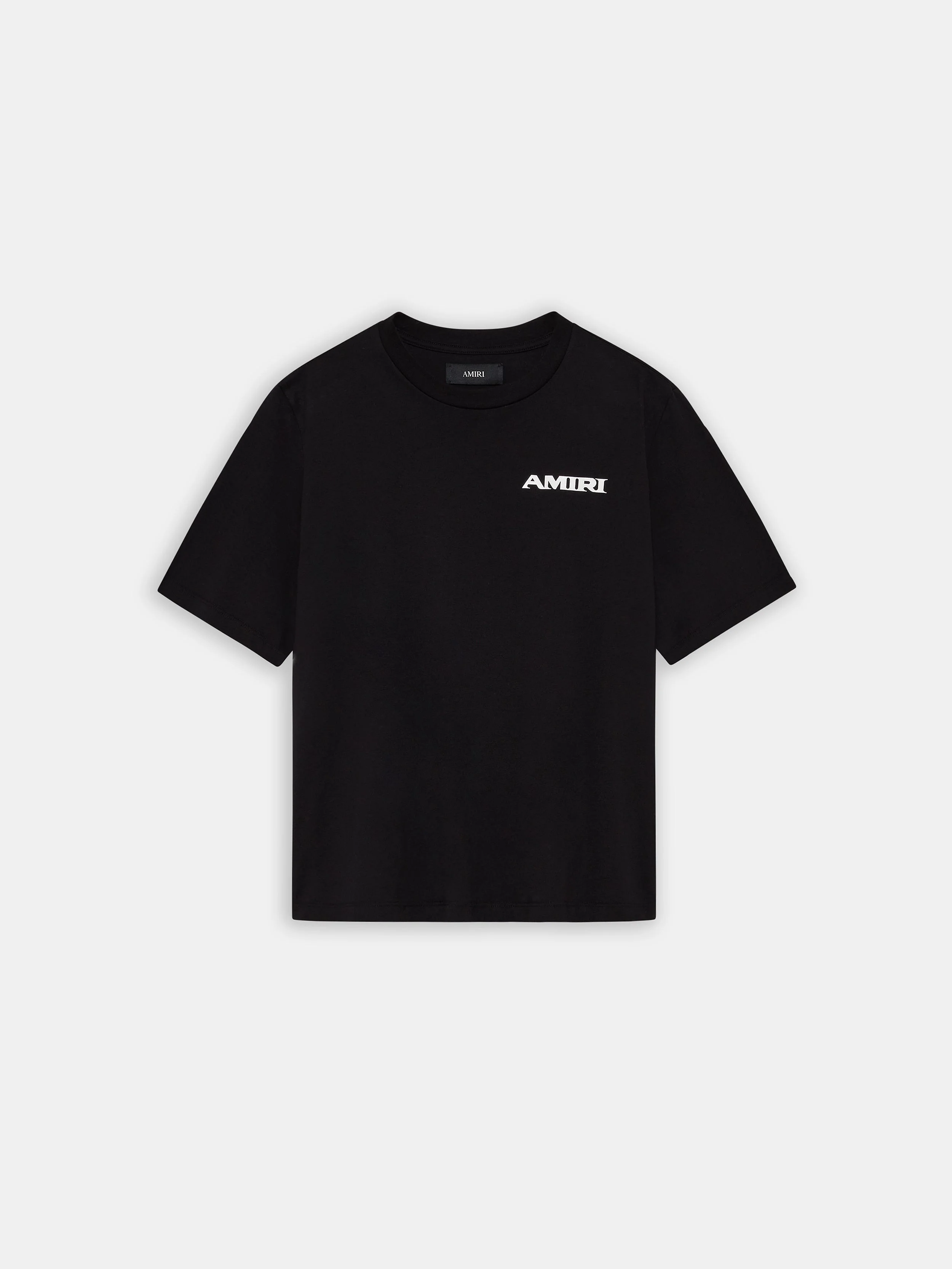 FOR PRE-SPRING 2026, MOTIFS ARE ADAPTED FROM '80S SPORTSWEAR CLASSICS, FORMING NOVEL RENDITIONS OF THE HOUSE LOGO. THE AMIRI SPORT TEE IN COTTON IS DESIGNED IN A STRAIGHT FIT AND ILLUSTRATED WITH A SEASONAL GRAPHIC AT CHEST. PRE-SPRING 2026 COLLECTION MADE IN ITALY 100% COTTON THIS GARMENT HAS UNDERGONE A SPECIAL PROCESS WHICH RESULTS IN INTENTIONAL VARIATIONS OF SHADING AND COLOR, AND ADD TO THE PIECE'S UNIQUE CHARACTERISTICS. THIS MAY LEAD TO BLEEDING OR DYE TRANSFER. PLEASE USE CAUTION WHEN WASHING OR DRY-CLEANING THIS ITEM STYLE:AMTOJR1041-001 SIZE & FIT MODEL MEASUREMENTS: HEIGHT: 6’2” CHEST: 35.5" WAIST: 28" HIP: 34.5" PRODUCT MEASUREMENTS (SIZE M): CHEST: 22" SHOULDER: 18.5" LENGTH: 28" SLEEVE LENGTH: 10"