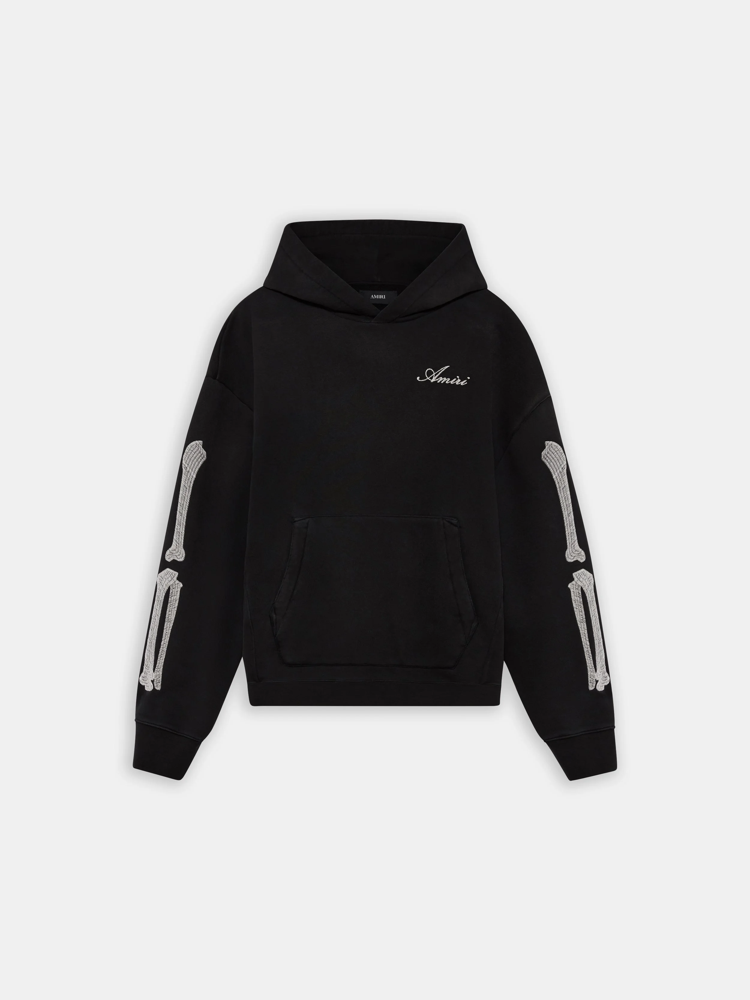 THE HOUSE'S SIGNATURE BONES MOTIF ENHANCES JERSEY HOODIES FOR PRE-SPRING 2026. THE BONES OVERSIZED HOODIE IN COTTON IS EMBROIDERED WITH BONES MOTIFS AND THE HOUSE SCRIPT LOGO AND FINISHED WITH A KANGAROO POCKET. PRE-SPRING 2026 COLLECTION MADE IN ITALY 100% COTTON THIS GARMENT HAS UNDERGONE A SPECIAL PROCESS WHICH RESULTS IN INTENTIONAL VARIATIONS OF SHADING AND COLOR, AND ADD TO THE PIECE'S UNIQUE CHARACTERISTICS. THIS MAY LEAD TO BLEEDING OR DYE TRANSFER. PLEASE USE CAUTION WHEN WASHING OR DRY-CLEANING THIS ITEM STYLE:AMTOJR1031-001 SIZE & FIT MODEL MEASUREMENTS: HEIGHT: 6'1" CHEST: 34.5" WAIST: 26.5" HIP: 34" PRODUCT MEASUREMENTS (SIZE M): CHEST: 24" SHOULDER: 24" LENGTH: 28" SLEEVE LENGTH: 27"