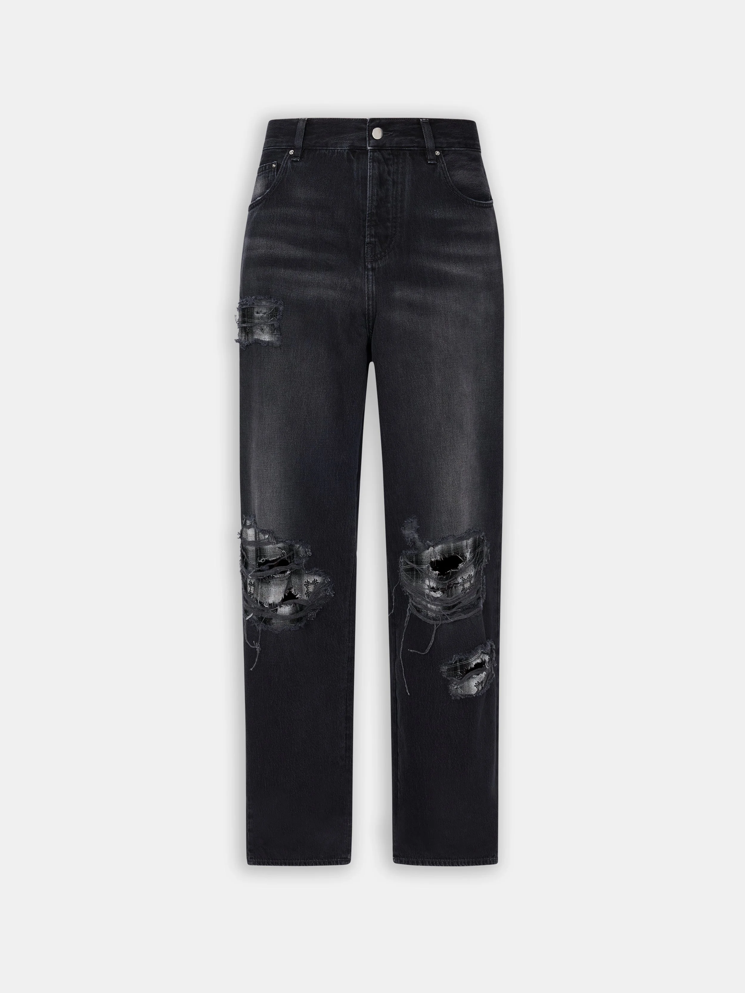 FLANNEL PRINT LENDS AN AIR OF RUGGED UTILITY TO HOUSE SIGNATURE DENIM FOR PRE-SPRING 2026. THE FLANNEL REPAIR BAGGY JEAN FEATURES CLASSIC FIVE-POCKET CONSTRUCTION AND IS DISTRESSED AND REPAIRED WITH FLANNEL PATCHES FOR A LIVED-IN EFFECT. PRE-SPRING 2026 COLLECTION MADE IN ITALY 100% COTTON EACH PIECE IS METICULOUSLY CRAFTED AND INHERENTLY UNIQUE. SLIGHT VARIATIONS IN THE ARTWORK ARE A NATURAL RESULT OF THE PRINTING PROCESS AND CONTRIBUTE TO THE DISTINCTIVE CHARACTER OF THIS PRODUCT. STYLE:AMBMJE1033-598 SIZE & FIT MODEL MEASUREMENTS: HEIGHT: 6’1" CHEST: 36" WAIST: 27" HIP: 34.5" PRODUCT MEASUREMENTS (SIZE 30): WAIST: 33" RISE: 14" HIP: 41" INSEAM: 33"