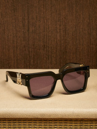 REFERENCING ICONIC EYEWEAR STYLINGS OF THE PAST, THE JUMBO MA SUNGLASSES ARE AN EXAGGERATED TAKE ON THE CLASSIC AMIRI SILHOUETTE. FEATURING MAGNIFIED VOLUMES AND SHARP, SCULPTURAL LINES, THESE SUNGLASSES ARE CRAFTED WITH OVERSIZED MA HARDWARE THAT WRAPS AROUND BOTH ARMS. THESE SUNGLASSES ARE ENHANCED WITH CUSTOM ETCHED INTERNAL WIRE CORES AND 7-BARREL HINGES FOR LONGEVITY IN WEAR.MADE IN JAPAN100% ACETATE STYLE:AMACSN1001-001