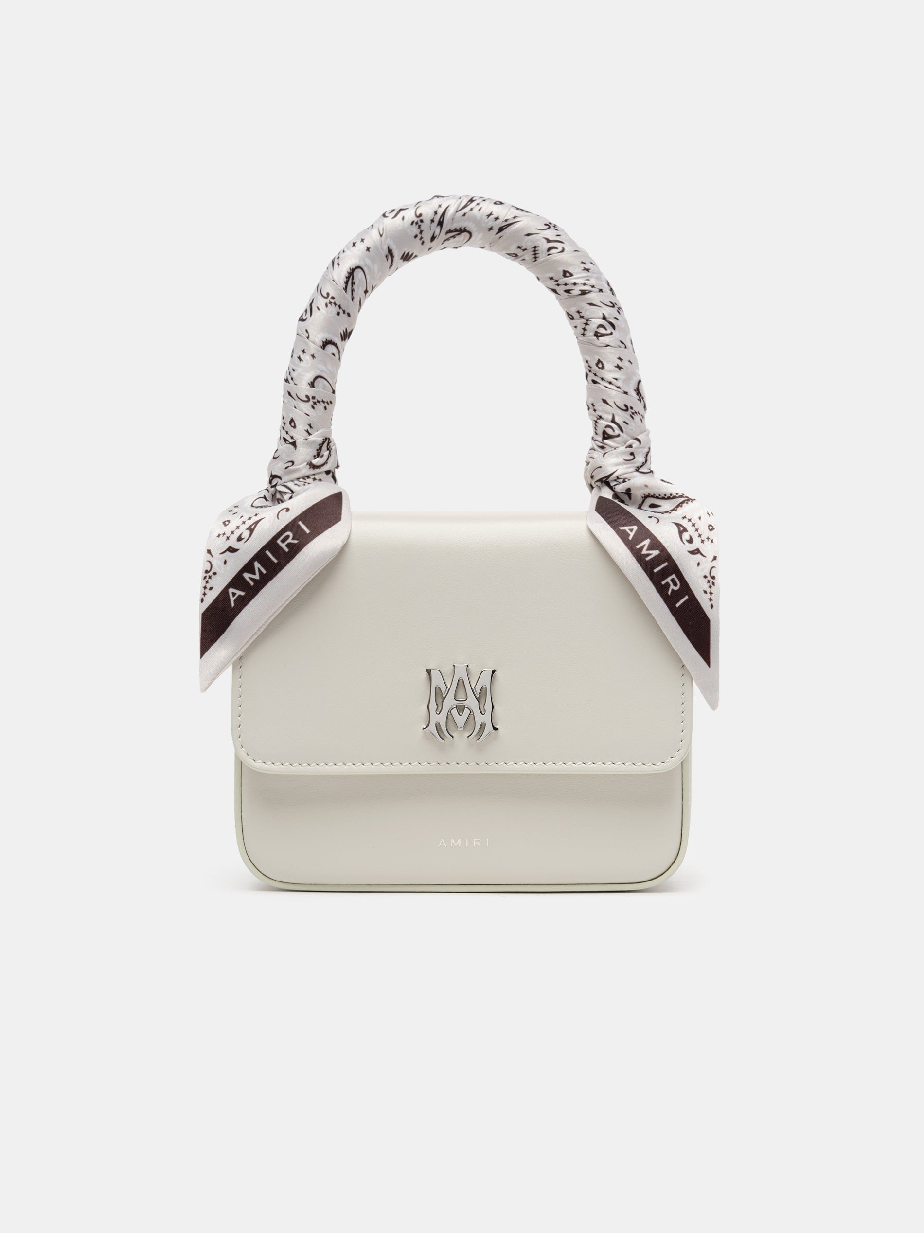 AN INSTANTLY RECOGNIZABLE HOUSE ICON, THE MICRO MA BAG IS IDEAL FOR CARRYING SMALL ESSENTIALS FOR DAYTIME OR EVENING EXCURSIONS. THE MICRO MA BAG IS CRAFTED FROM NAPPA LEATHER WITH TIED AMIRI BANDANA ACCENTS, A TOP HANDLE AND A DETACHABLE LEATHER SHOULDER STRAP. CORE COLLECTION MADE IN ITALY 100% LEATHER