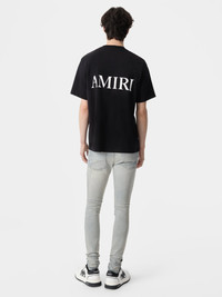 DENIM BECOMES A CANVAS FOR INTRICATE FABRICATION PROCESSES THAT EMBODY THE HOUSE'S SPIRIT OF CONTEMPORARY INNOVATION AND CRAFT. THE MX1 ULTRASUEDE IN ITALIAN STRETCH DENIM IS HAND-DISTRESSED AND REPAIRED WITH PLEATED SUEDE AND FINISHED WITH CLASSIC FIVE-POCKET DETAILING. CORE COLLECTION MADE IN USA 92% COTTON 6% ELASTOMULTIESTERE 2% ELASTANE, CONTRAST: 100% ULTRASUEDE STYLE:AMDNSY1055-406 SIZE & FIT MODEL IS WEARING SIZE "29" MODEL MEASUREMENTS: HEIGHT: 6'3 CHEST: 34" WAIST: 30" HIP: 36" PRODUCT MEASUREMENTS: WAIST: 29.5" RISE: 9.75" HIP: 36" INSEAM: 34" SKINNY FIT