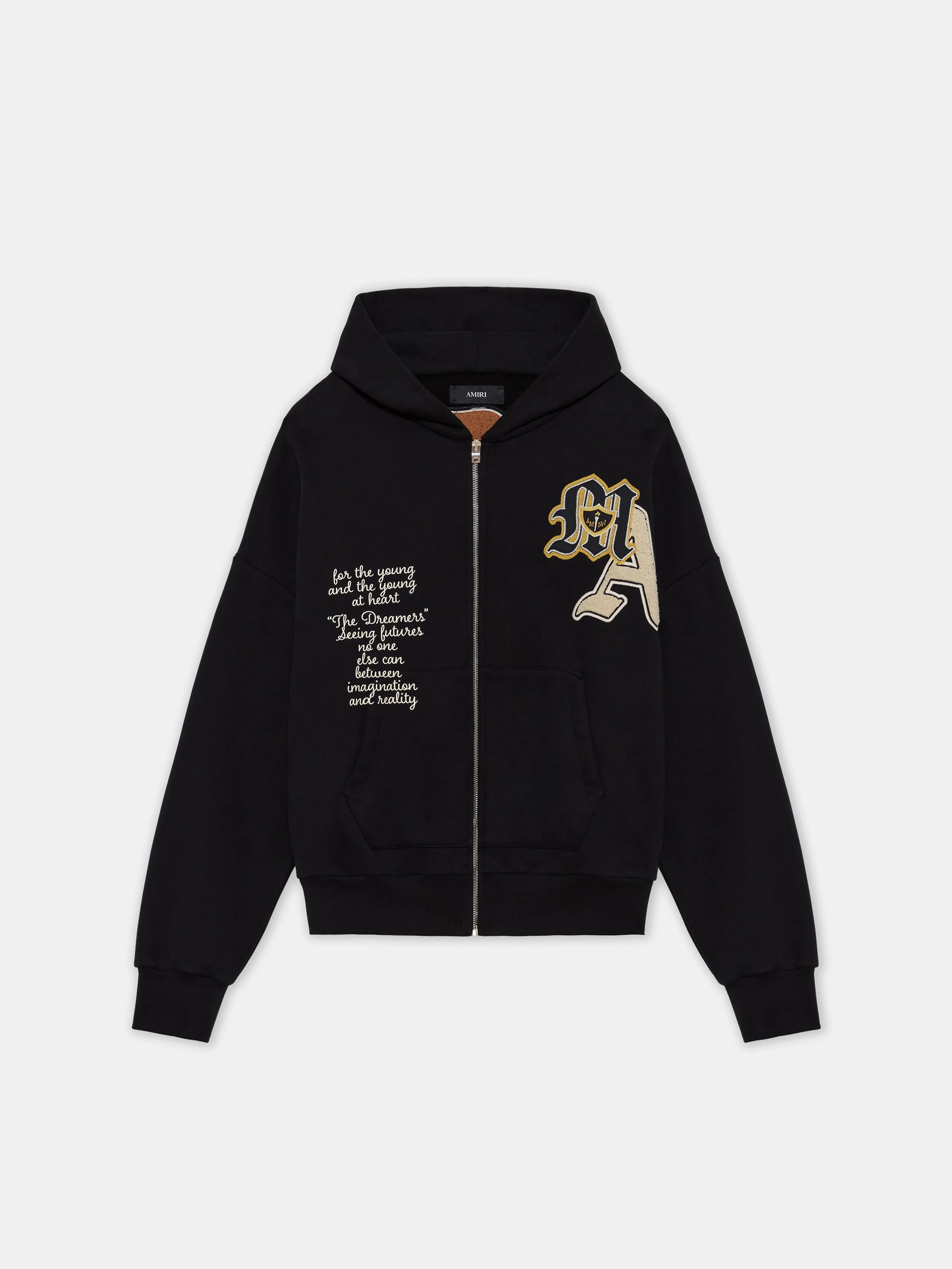 THE PRE-SPRING 2026 MENSWEAR COLLECTION REIMAGINES VINTAGE COLLEGIATE ICONOGRAPHY THROUGH A HOUSE SIGNATURE LENS. THE VARSITY PATCH OVERSIZED ZIP HOODIE IS ILLUSTRATED WITH PATCH APPLIQUES AND FINISHED WITH ZIP CLOSURE. PRE-SPRING 2026 COLLECTION MADE IN ITALY 100% COTTON THIS GARMENT HAS UNDERGONE A SPECIAL PROCESS WHICH RESULTS IN INTENTIONAL VARIATIONS OF SHADING AND COLOR, AND ADD TO THE PIECE'S UNIQUE CHARACTERISTICS. THIS MAY LEAD TO BLEEDING OR DYE TRANSFER. PLEASE USE CAUTION WHEN WASHING OR DRY-CLEANING THIS ITEM STYLE:AMTOJR1014-001 SIZE & FIT MODEL MEASUREMENTS: HEIGHT: 6'1" CHEST: 34.5" WAIST: 26.5" HIP: 34" PRODUCT MEASUREMENTS (SIZE M): CHEST: 26.5" SHOULDER: 27" LENGTH: 28.5" SLEEVE LENGTH: 22.5"