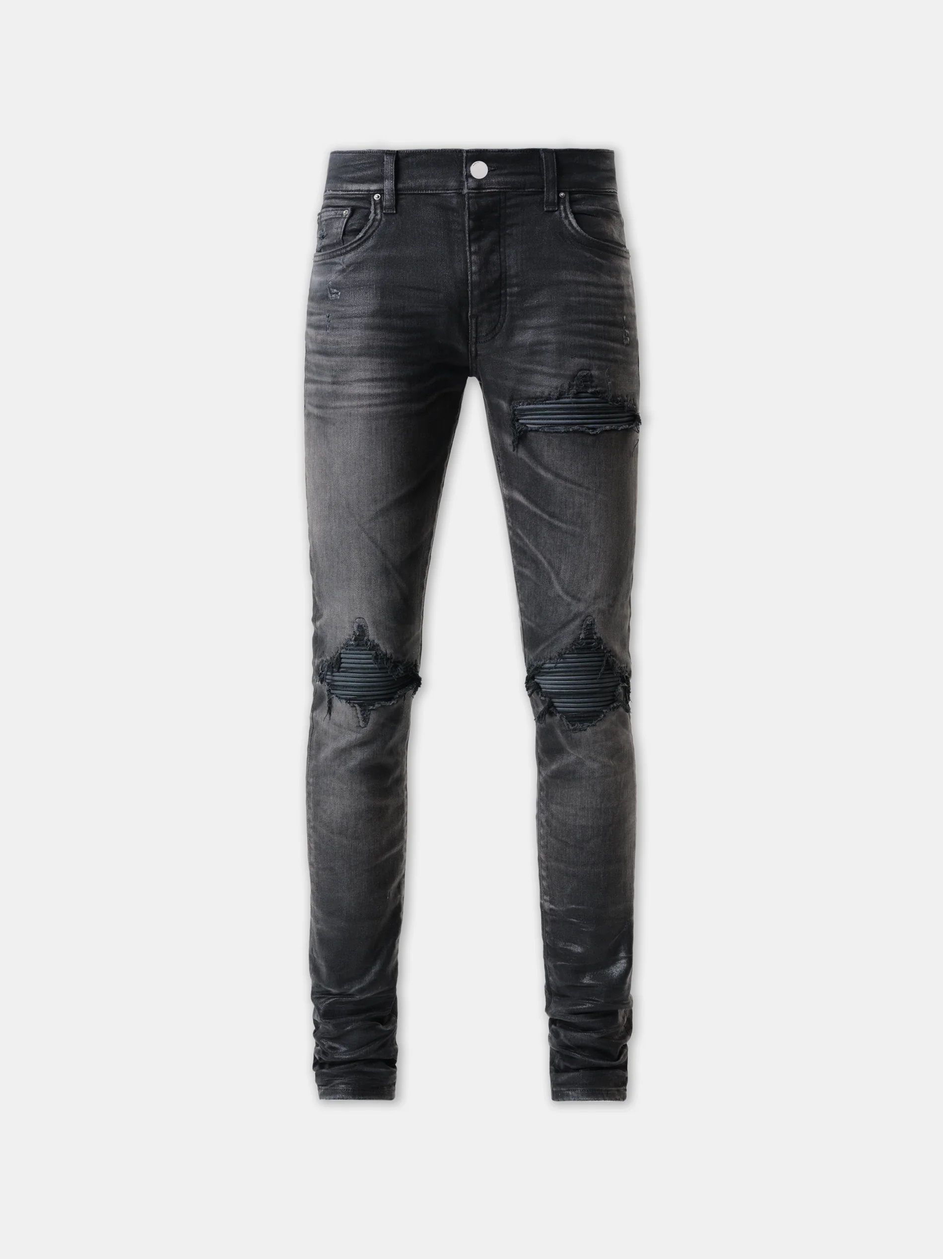 FOR PRE-SPRING 2025, DENIM BECOMES A CANVAS FOR INTRICATE FABRICATION PROCESSES THAT EMBODY THE HOUSE'S SPIRIT OF CONTEMPORARY INNOVATION AND CRAFT. THE WAXED TONAL MX1 JEAN IN ITALIAN STRETCH DENIM IS DESIGNED WITH CLASSIC FIVE-POCKET CONSTRUCTION AND REPAIRED WITH PLEATED TONAL ULTRASUEDE. PRE-SPRING 2025 COLLECTION MADE IN USA SELF: 92% COTTON, 6% ELASTOMULTIESTER, 2% ELASTANE CONTRAST: ULTRASUEDE THIS GARMENT HAS UNDERGONE A SPECIAL PROCESS WHICH RESULTS IN INTENTIONAL VARIATIONS OF SHADING AND COLOR, AND ADD TO THE PIECE'S UNIQUE CHARACTERISTICS. THIS MAY LEAD TO BLEEDING OR DYE TRANSFER. PLEASE USE CAUTION WHEN WASHING OR DRY-CLEANING THIS ITEM. STYLE:AMDNSY1145-556 SIZE & FIT MODEL IS WEARING SIZE "29W34L" MODEL MEASUREMENTS: HEIGHT: 5'10 CHEST: 32"" WAIST: 28"" HIP: 34.5"" PRODUCT MEASUREMENTS (SIZE “29W34L”): WAIST: 30" RISE: 10" HIP: 36" INSEAM: 34"