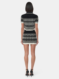 THE HOUSE'S SIGNATURE CHECKERBOARD PRINT ILLUSTRATES WOOL KNITS FOR PRE-SPRING 2026. THE CHECKERED MESH POLO IN WOOL IS CRAFTED WITH FINE RIB FINISHES, CONTRAST TIPPING AT THE COLLAR, THREE-BUTTON CLOSURE, AND EMBROIDERED MA ICON APPLIQUE AT THE CHEST. PRE-SPRING 2026 COLLECTION MADE IN ITALY 100% WOOL THIS GARMENT HAS UNDERGONE A SPECIAL PROCESS WHICH RESULTS IN INTENTIONAL VARIATIONS OF SHADING AND COLOR, AND ADD TO THE PIECE'S UNIQUE CHARACTERISTICS. THIS MAY LEAD TO BLEEDING OR DYE TRANSFER. PLEASE USE CAUTION WHEN WASHING OR DRY-CLEANING THIS ITEM STYLE:AWTOKN1045-001