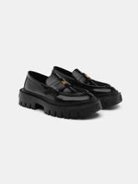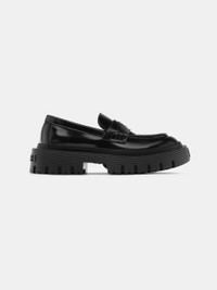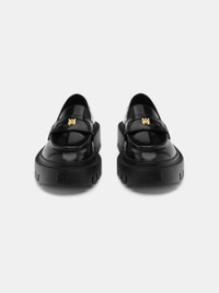 FOR AUTUMN-WINTER 2024, HERITAGE FOOTWEAR SILHOUETTES ARE ELEVATED THROUGH SCALED-UP PROPORTIONS AND HOUSE ICONOGRAPHY. THE JUMBO LOAFER IS DESIGNED WITH A RUBBER LUG SOLE AND A CLASSIC SADDLE ACCENTED WITH CUSTOM MA HARDWARE. AUTUMN-WINTER 2024 COLLECTION MADE IN ITALY UPPER: LEATHER. SOLE: RUBBER STYLE:AWFOLR1001-001