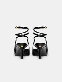 HOUSE ICONS ILLUSTRATE FOOTWEAR SILHOUETTES FOR SPRING-SUMMER 2025 WOMENSWEAR. THE MA KITTEN HEEL IN LEATHER IS DESIGNED IN A SLINGBACK SILHOUETTE AND FINISHED WITH AN ADJUSTABLE BUCKLE ACCENTED WITH CUSTOM MA ICON HARDWARE. SPRING-SUMMER 2025 COLLECTION MADE IN ITALY 100% LEATHER STYLE:AWFOPP1001-001