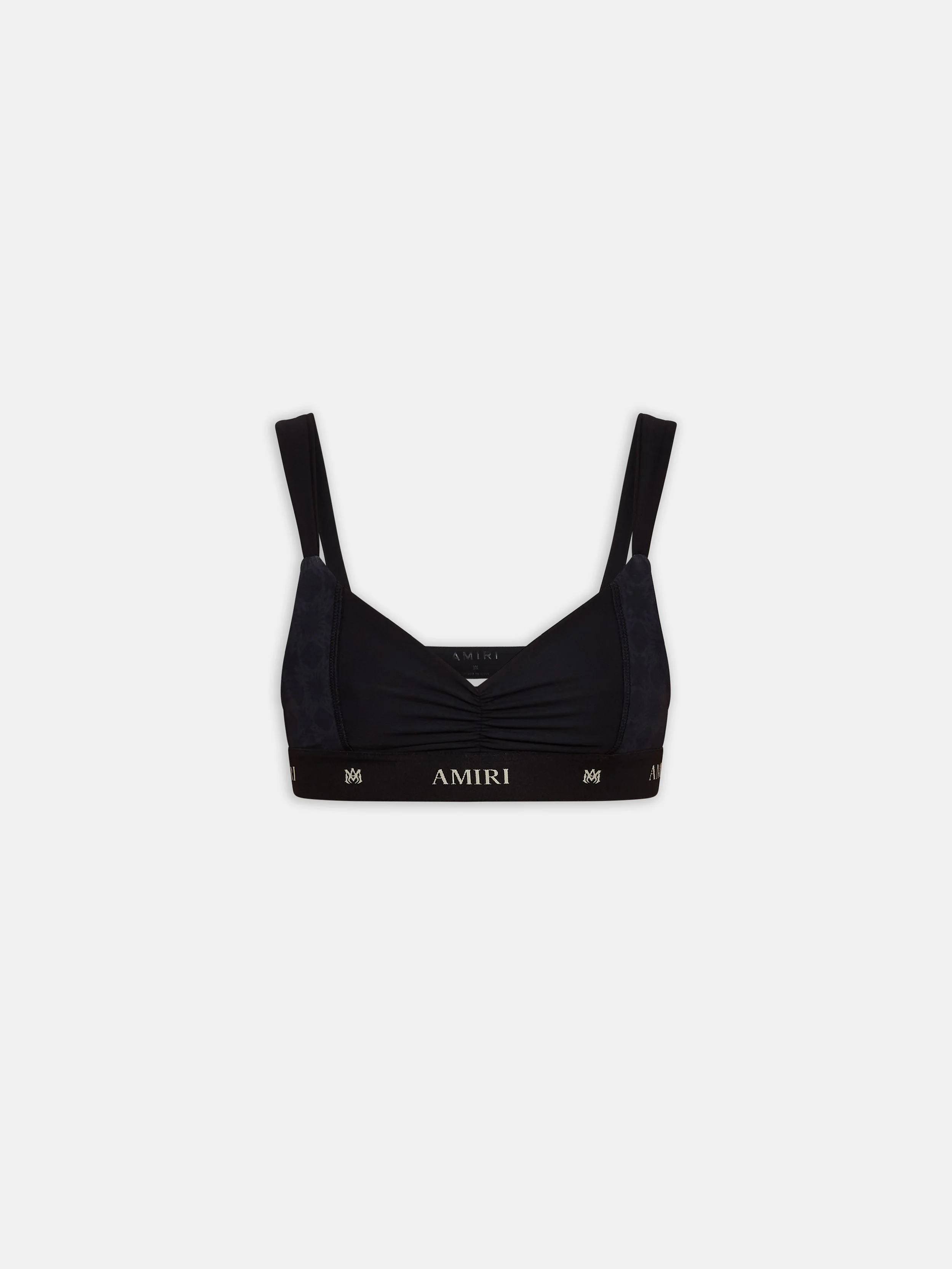 PRE-SPRING 2026 WOMENSWEAR INTRODUCES VERSATILE SILHOUETTES ENHANCED BY HOUSE ICONOGRAPHY. THE MA QUAD SPORTS BRA FEATURES PANELED CONSTRUCTION, RUCHED DETAILING, AND AN UNDERBAND ILLUSTRATED WITH THE HOUSE LOGO AND MA ICON. PRE-SPRING 2026 COLLECTION MADE IN ITALY 69% NYLON, 31% ELASTANE THIS GARMENT HAS UNDERGONE A SPECIAL PROCESS WHICH RESULTS IN INTENTIONAL VARIATIONS OF SHADING AND COLOR, AND ADD TO THE PIECE'S UNIQUE CHARACTERISTICS. THIS MAY LEAD TO BLEEDING OR DYE TRANSFER. PLEASE USE CAUTION WHEN WASHING OR DRY-CLEANING THIS ITEM STYLE:AWBOAC1005-001
