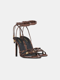 SNAKE-DEBOSSED LEATHER AND MA ICON DETAILING DEFINE A HIGH HEEL SILHOUETTE FOR SPRING-SUMMER 2026. THE SNAKE MA HEELED SANDAL IS DESIGNED WITH WRAPAROUND SELF-TIE ANKLE STRAPS ACCENTED WITH CUSTOM MA HARDWARE. SPRING-SUMMER 2026 COLLECTION MADE IN ITALY UPPER: 100% CALF GRAIN LEATHER THIS GARMENT HAS UNDERGONE A SPECIAL PROCESS WHICH RESULTS IN INTENTIONAL VARIATIONS OF SHADING AND COLOR, AND ADD TO THE PIECE'S UNIQUE CHARACTERISTICS. THIS MAY LEAD TO BLEEDING OR DYE TRANSFER. PLEASE USE CAUTION WHEN WASHING OR DRY-CLEANING THIS ITEM STYLE:AWHEHL1005-210 SIZE & FIT HEEL HEIGHT: 104MM / 4IN